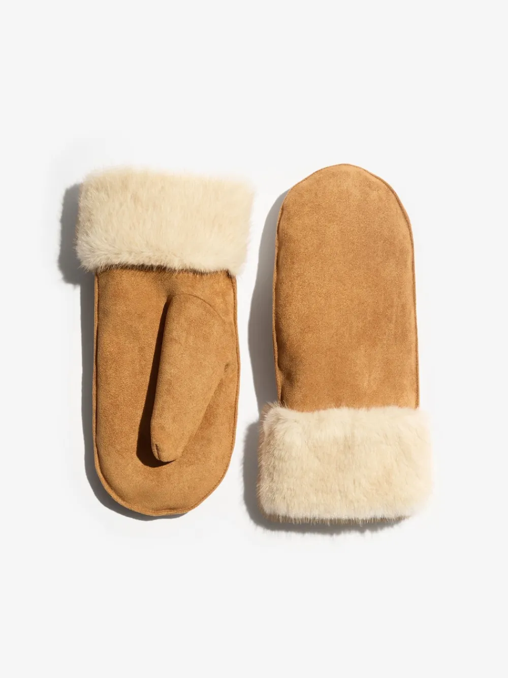 Wrap your hands in luxurious warmth with these tan mittens. Crafted from super soft faux suede and double lined with cozy shearling-style fleece, they are the ultimate cold-weather accessory for a comfortable and stylish look. Super soft Double lined Shearling-style fleece lining Suede-style outer Main 94% Polyester, 6% Elastane. Artificial Fur 100% Polyester.
