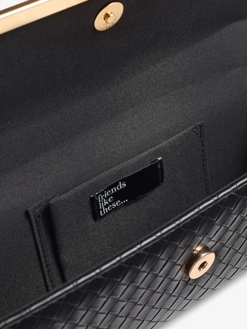Be the first to review “Friends Like These Top Handle Weave Clutch Bag Black Clearance” Cancel reply