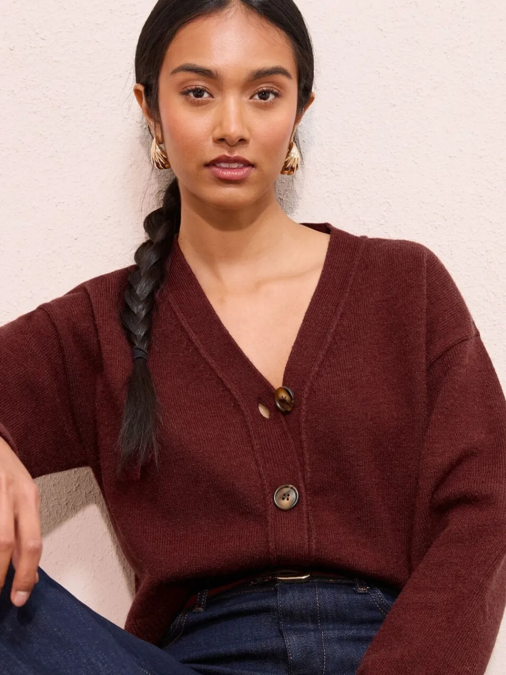 Friends Like These V-Neck Exposed Seam Cardigan Berry Red Best
