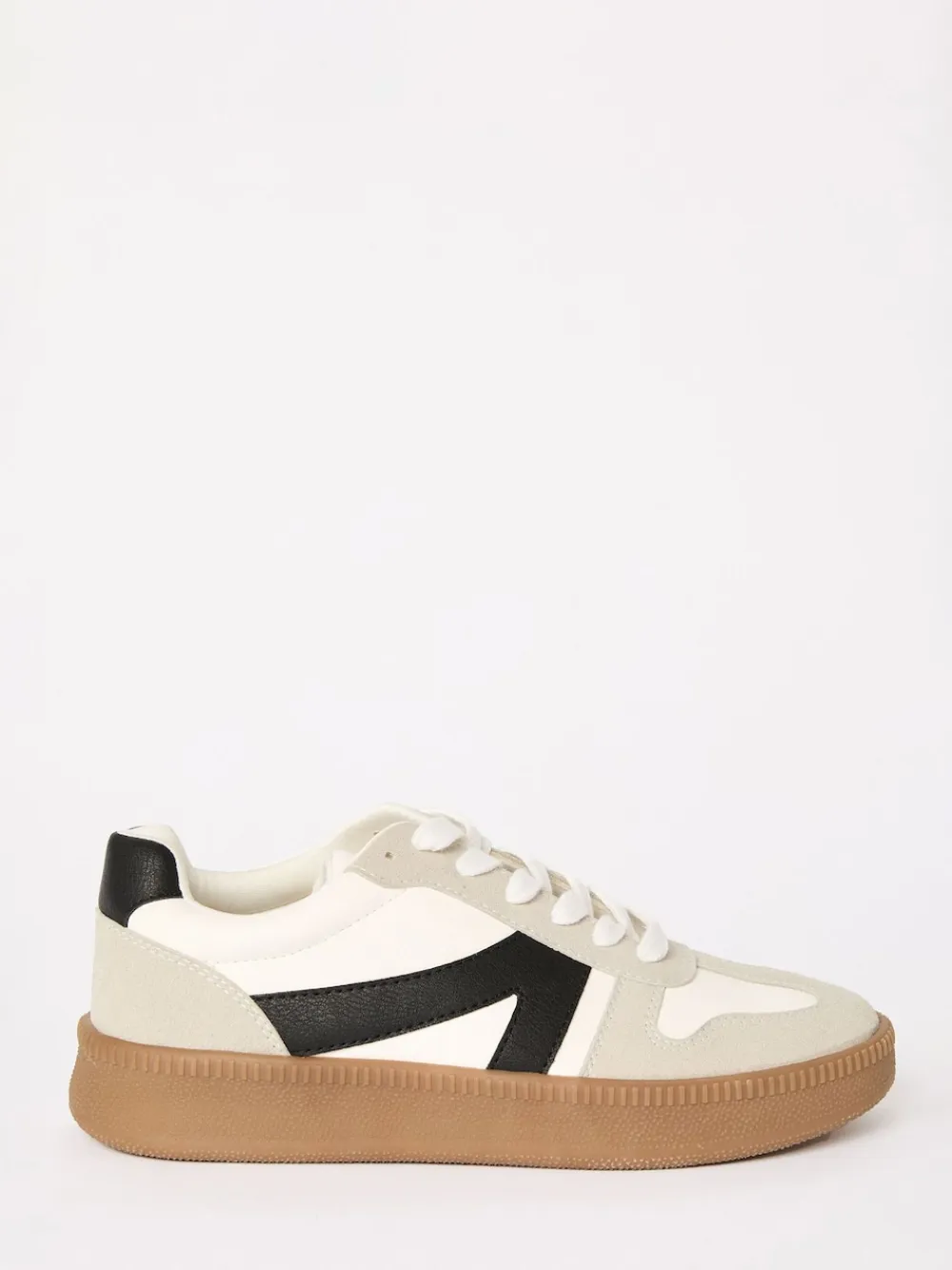 Stay super on trend with the gumsole retro trainer! A classic design that will never go out of style. Pair with your favourite pair of jeans or with a dress for an easy springtime look! Featuring: Contrast paneling Laces for adjustable fastening Retro design Natural colour gum outsole Stripe Design Casual wear Upper – Other Materials, Lining & Sock – Textile, Other Materials, Sole – Other Materials, Textile, Other Materials.