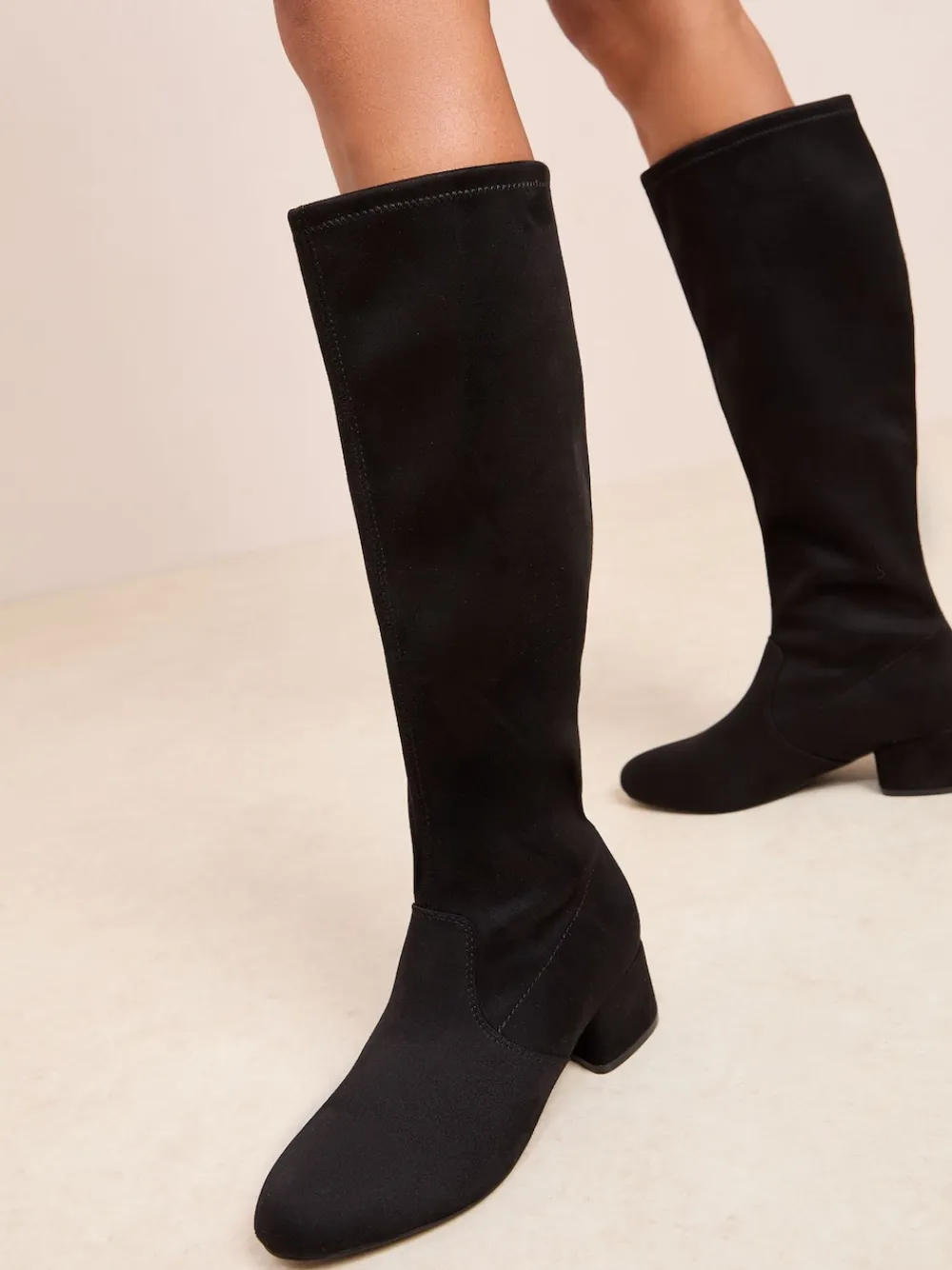 Friends Like These Wide Fit Low Block Heel Faux Suede Knee High Sock Boots Black Discount