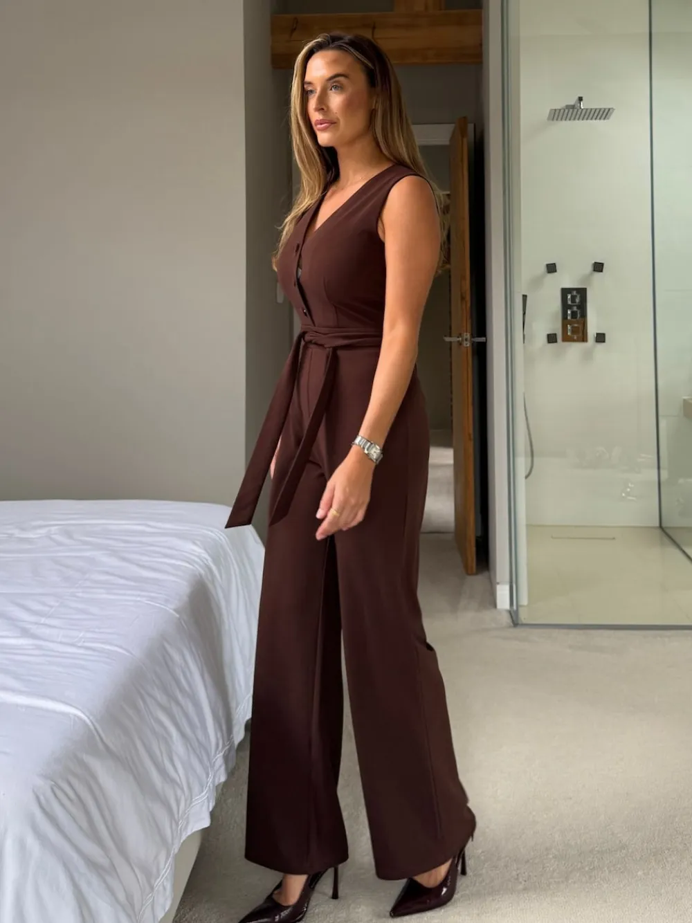 Girl In Mind Trisha Tailored Waistcoat Jumpsuit Brown Best