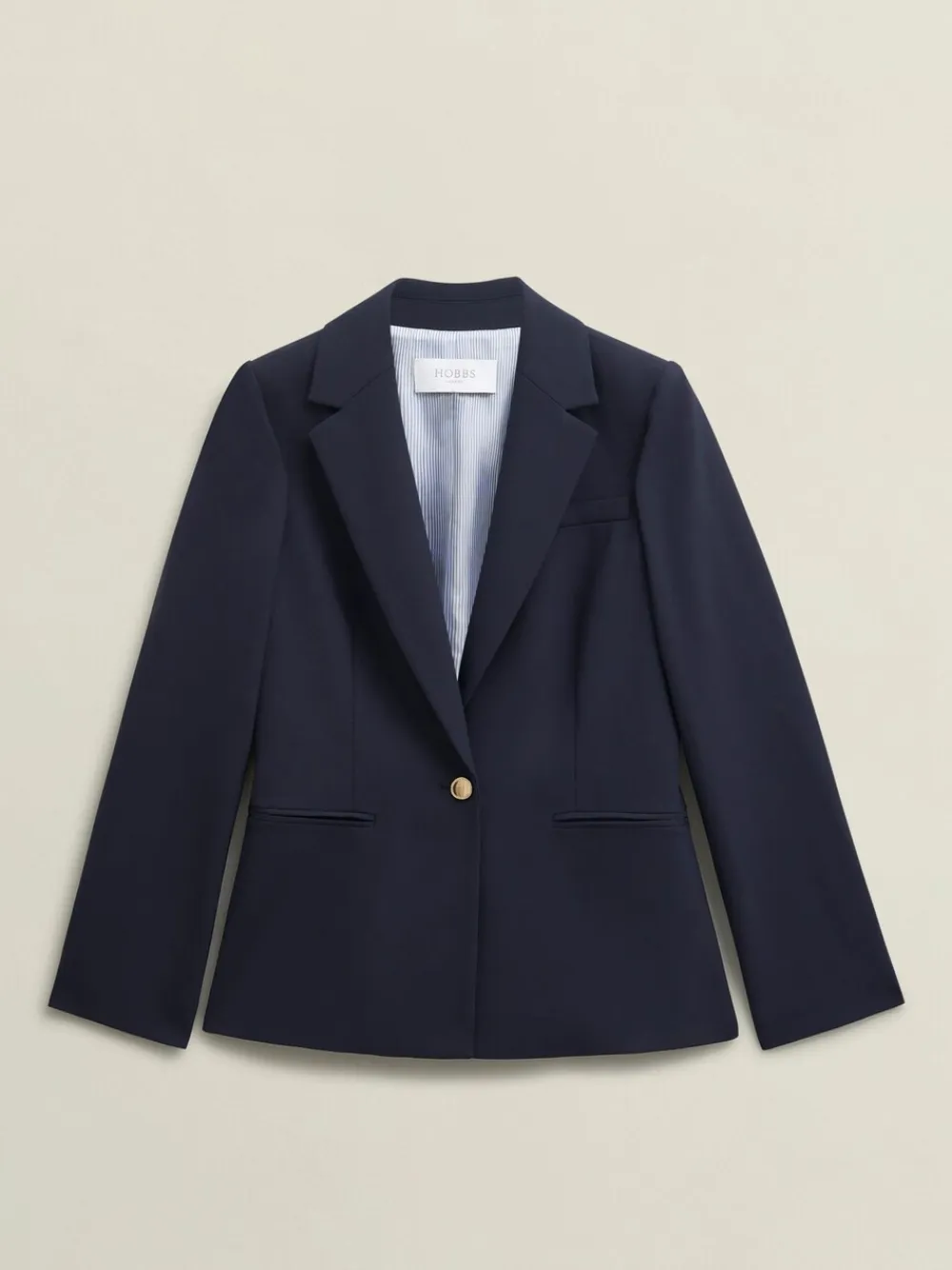 An everyday layer that marries sartorial style with relaxed tailoring, the Gianna jacket makes work-to-weekend outfitting a breeze. Relaxed tailoring. Single-breasted. Gold button fastening. Stylish stripe lining. Notch lapels and pockets. Dry clean only. Main 47% Polyester, 46% Viscose, 7% Elastane. Lining 54% Acetate, 46% Viscose.