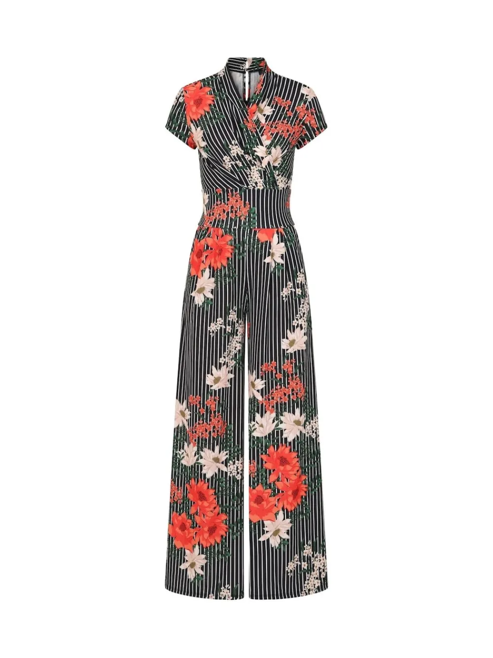 Hot Squash HotSquash Black Pin Striped Floral Wide Leg Jumpsuit Discount