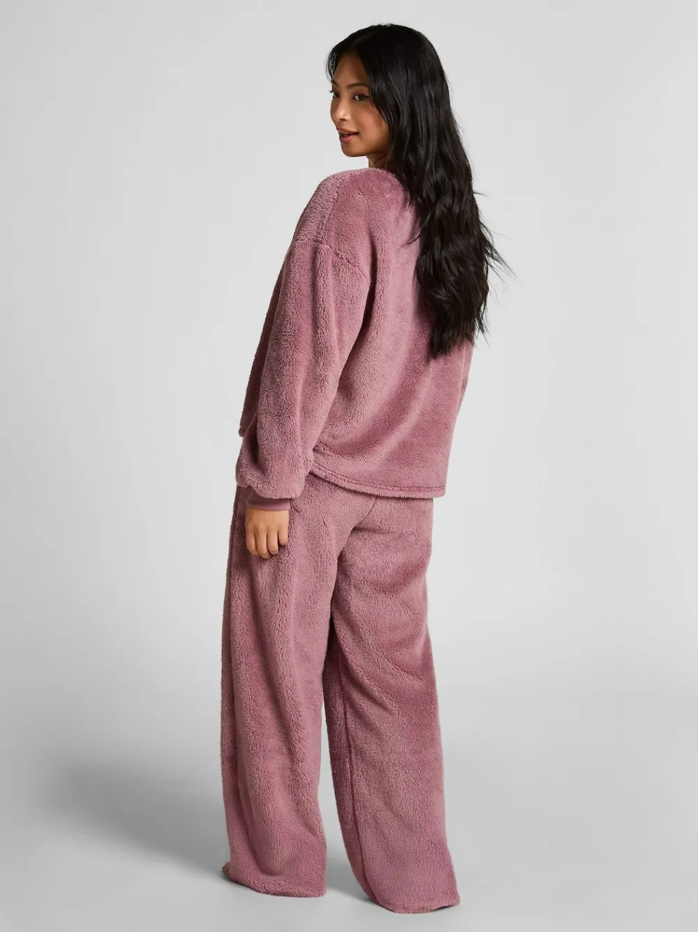 Hunkemoller Cosy Fleece Two Piece Pyjama Set Pink New