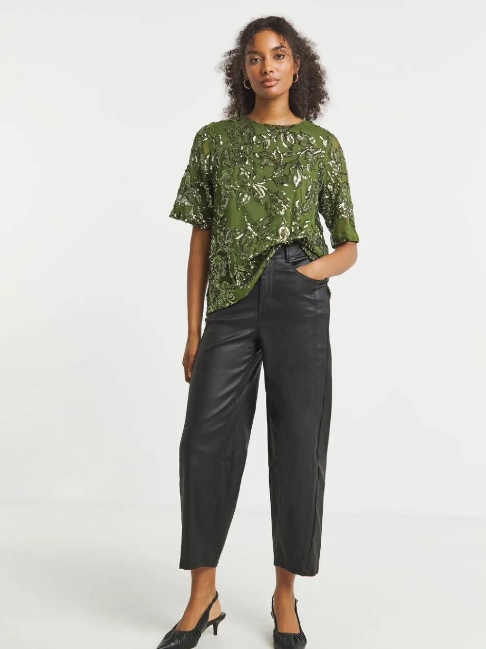 Our new Joanna Hope Floral Sequin Blouse is the perfect piece for your next occasion. This blouse has been designed in a gorgeous green colourway with intricate floral sequin details to guarantee you will feel fabulous this season! Hand wash only. 95% Polyester, 5% Elastane.