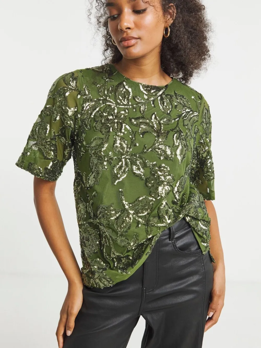 Be the first to review “Joanna Hope Floral Sequin Green Blouse Hot” Cancel reply