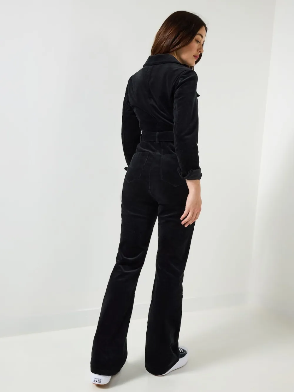 We ve updated our comfy jumpsuit – new season, new shape, same gorgeous retro cord. Made in a bootcut design with a belt to flatter your figure, it has a classic black colour so you can wear it anywhere, anytime. Style it with trainers for an eye-catching everyday outfit, or jazz it up with boots and bold accessories. Inside Leg Regular 79cm, Petite 70cm Regular inside leg length 31″ / 79cm. Machine washable. 98% Cotton, 2% Elastane.