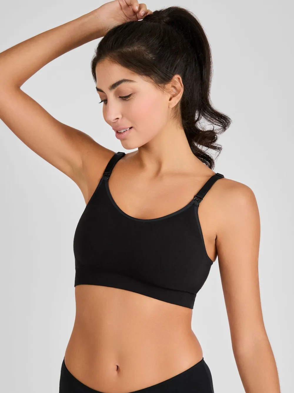 JoJo nursing bras are supremely comfortable. The soft cotton allows the skin to breathe, and seamless moulded cups are gentle on delicate skin, making them an ideal pick for supporting sensitive breasts during pregnancy, nursing, and beyond. Double up on the seamless bras by investing in a 2-pack. 1 white bra and 1 black bra can be worn under everything, and additional quick-release clips offer easy access for breastfeeding. In fact, our seamless nursing bras are so relaxing that you can even wear them to bed if you need extra sleep support. 32-34 B-DD (S), 34-36 B-DD (M), 36-38 B-DD (L) Satin bra straps Easy-release nursing clips Internal support for feeding Seamless Engineered shaping for extra support Moulded cups for comfort and support Soft breathable cotton fabric 6 x 3 hook and eye fastenings for added comfort & to accommodate growth Machine washable 76% Cotton, 14% Nylon, 10% Elastane.
