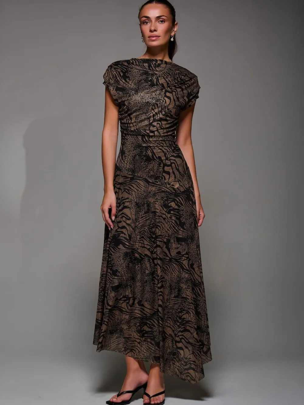 Jolie Moi Asymmetrical Draped Slash Neck Midaxi Dress Brown Sale