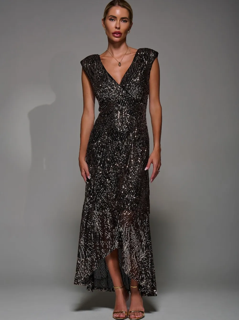 Be the first to review “Jolie Moi Black Ground Sequin Asymmetric Ruffle Hem Maxi Dress Sale” Cancel reply