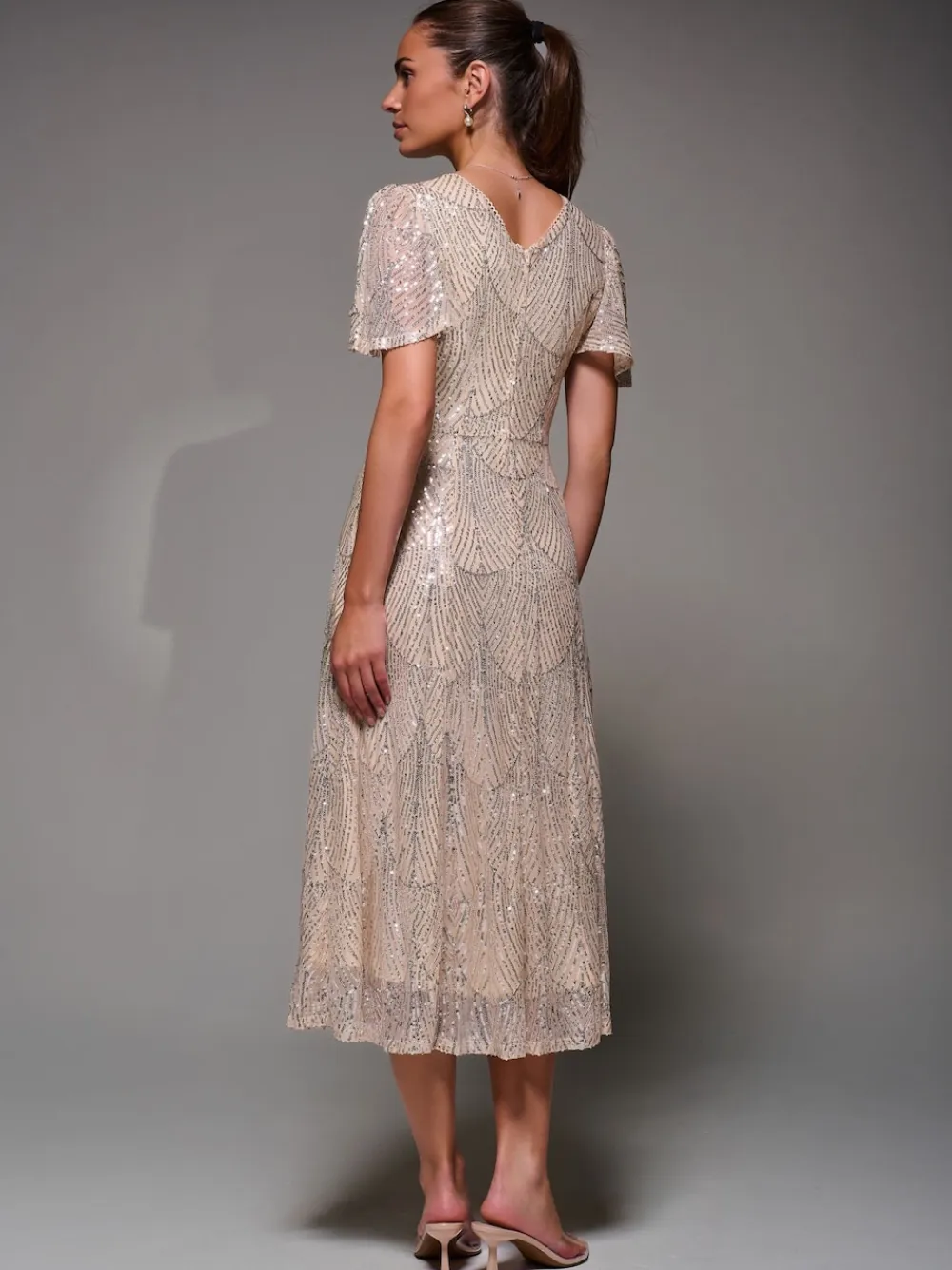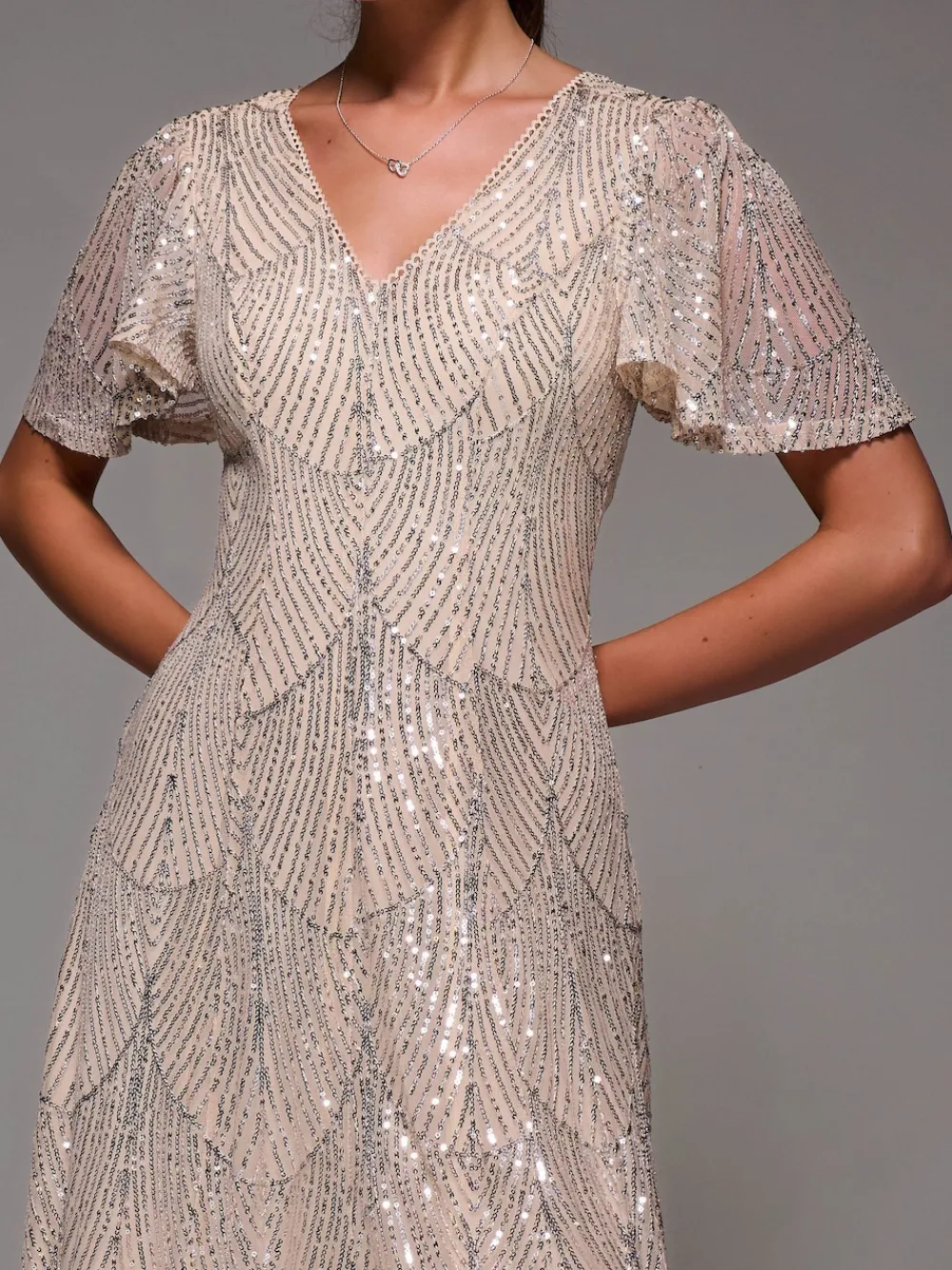 Jolie Moi Nude Sequin Angel Sleeve Fit & Flare Midaxi Dress Online