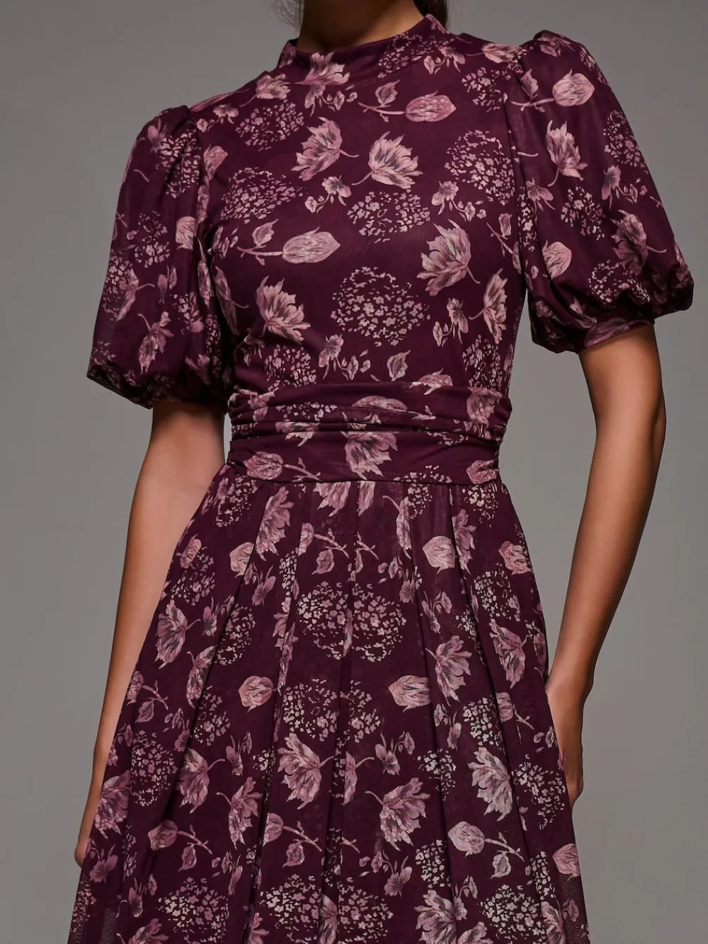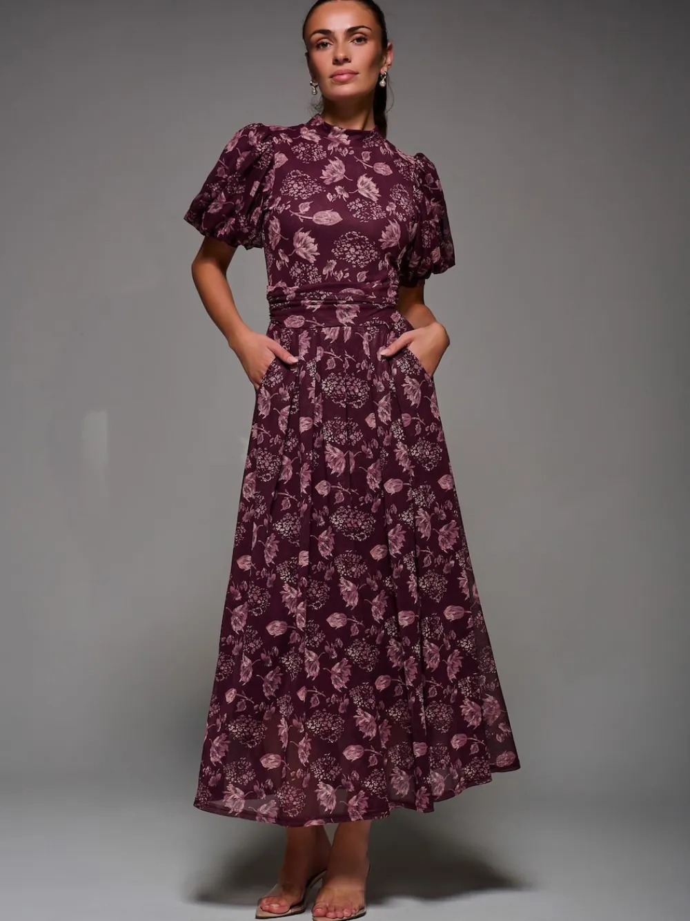 The Puffy Sleeve Printed Mesh Maxi Dress is your next wardrobe staple, perfect for your next autumn wedding. Adorned in a unique animal print, the soft mesh fabric cascades down to the perfect midmaxi length, complemented by the pleated skirt detailing around the waistband. The high neckline is a classic yet refined feature of this dress, contrasting with the short puffy sleeves, which give this dress a fun and feminine edge. The thick ruched waistband gives this dress a nice structure whilst also being comfortable, being an over-the-head style which is fully lined. Lastly, the discreet side front pockets add a practical touch. Machine washable. 95% Polyester, 5% Elastane.