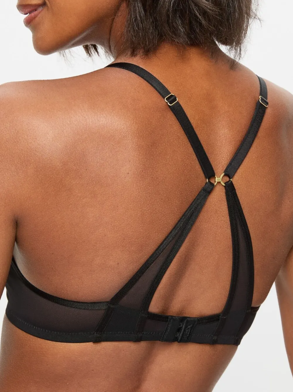 Introducing Zadie by KBX, a crop bra in a black soft-touch mesh fabric. Non-padded with semi-sheer cups and an elasticated trim for a seamless appearance under clothing. Complete with subtle brushed champagne gold-toned hardware, adjust the shoulder straps and hook and eye fastening to find the most comfortable fit. Nipple covers have been worn in this image. Hand wash only. 90% Nylon, 10% Elastane.