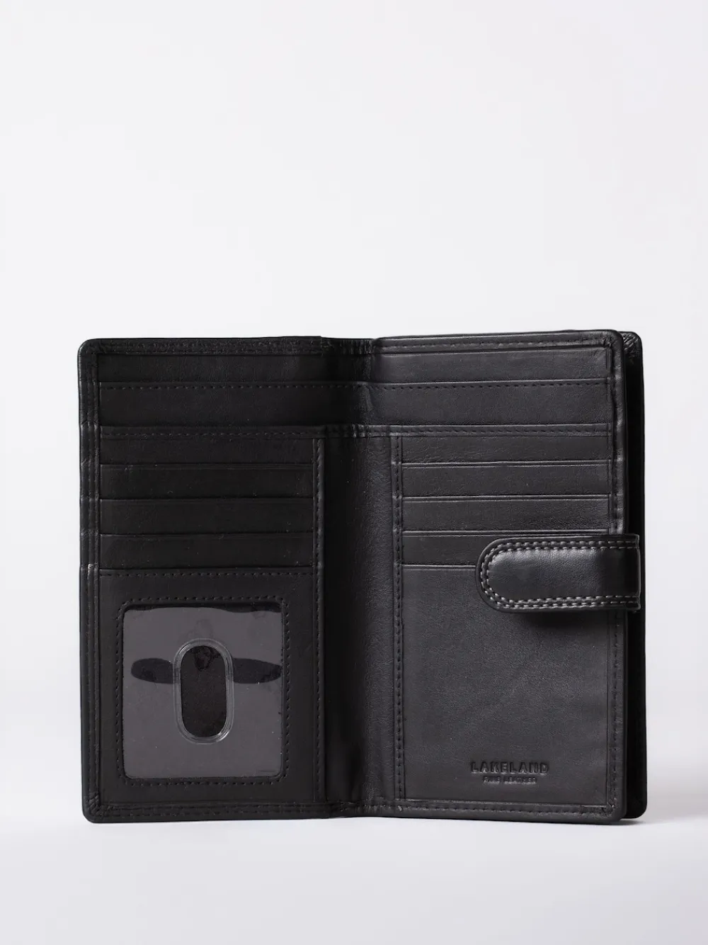 Keep your accessory collection updated with this leather tab purse from Lakeland Leather. The sleek and compact finish is teamed with functionality and the purse features 15 card slots, two cash pockets as well as a secure zipped coin compartment. This purse will certainly hold all of your essentials and more… Height 10cm Width 16cm Depth 3.5cm 100% Leather.