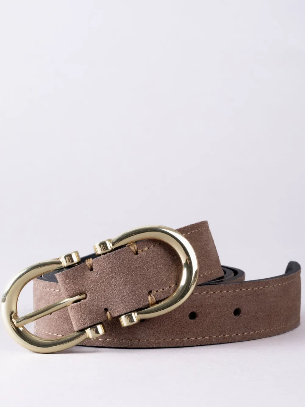 Lakeland Leather Bowness Dual Buckle Suede Belt Taupe Discount