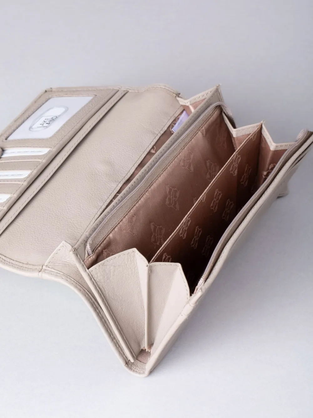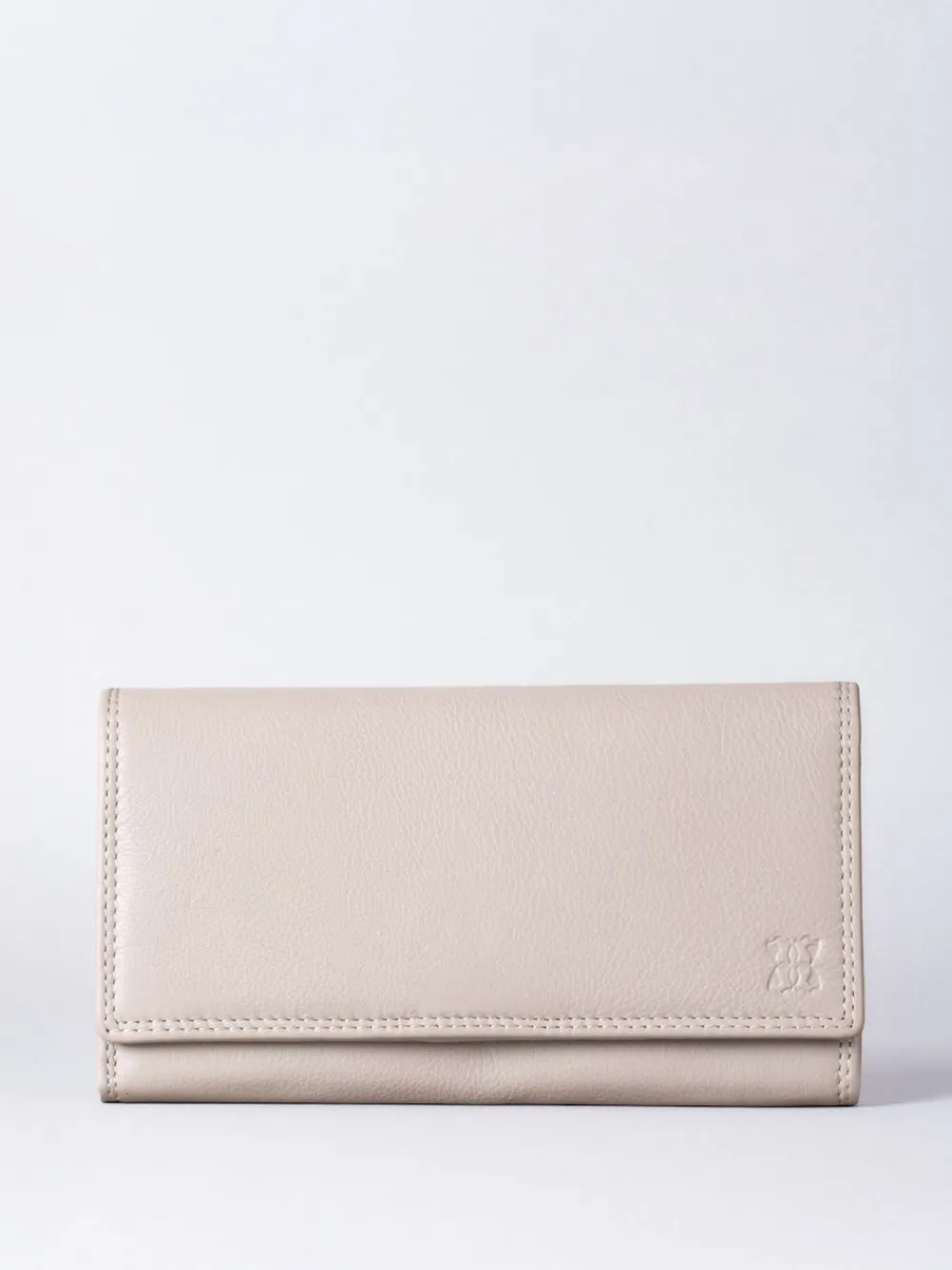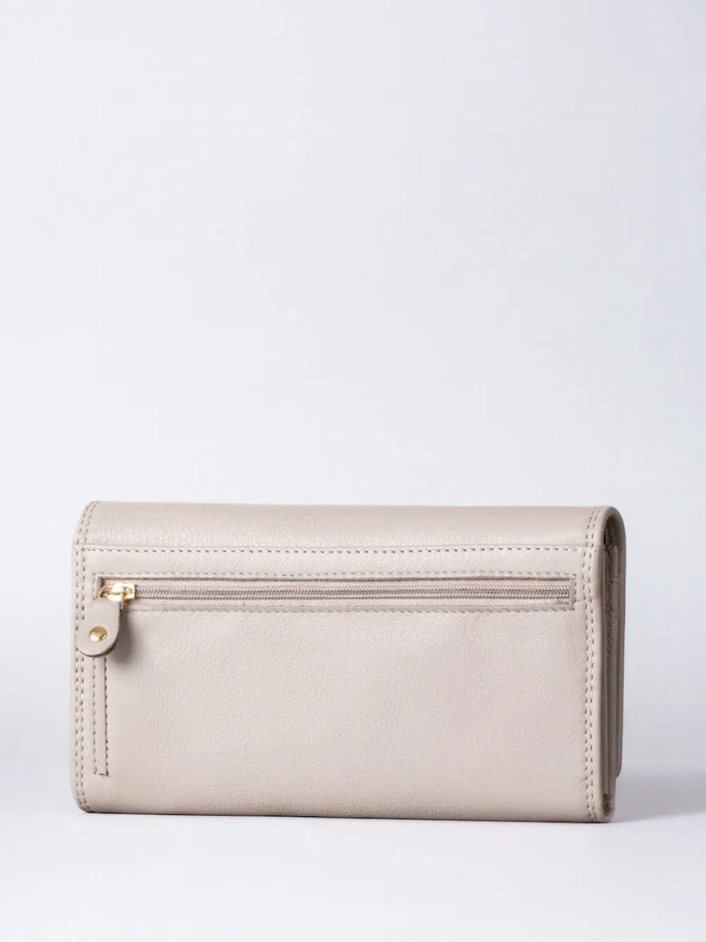 Lakeland Leather Light Grey Large Flapover Purse Discount