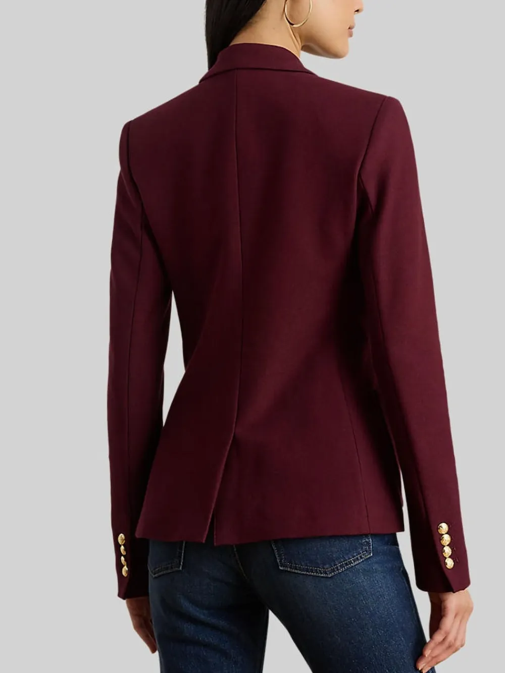This chic jacquard blazer embodies Lauren style with a signature bullion patch at the chest and luxurious crest-embossed buttons. Slim fit. Intended to hit at the hip. Size medium has a 25.5″ body length and a 32.5″ sleeve length. Body length and sleeve length are taken from the center back of the neck. Sleeve length changes 0.75″ between sizes.Notch lapels. Two-button silhouette.Long sleeves with four-button cuffs. Left chest patch pocket. Two front waist patch pockets. Crest-embossed buttons. Bullion “LRL” patch embroidered at the left chest. Fully lined. 98% Cotton, 2% Elastane.