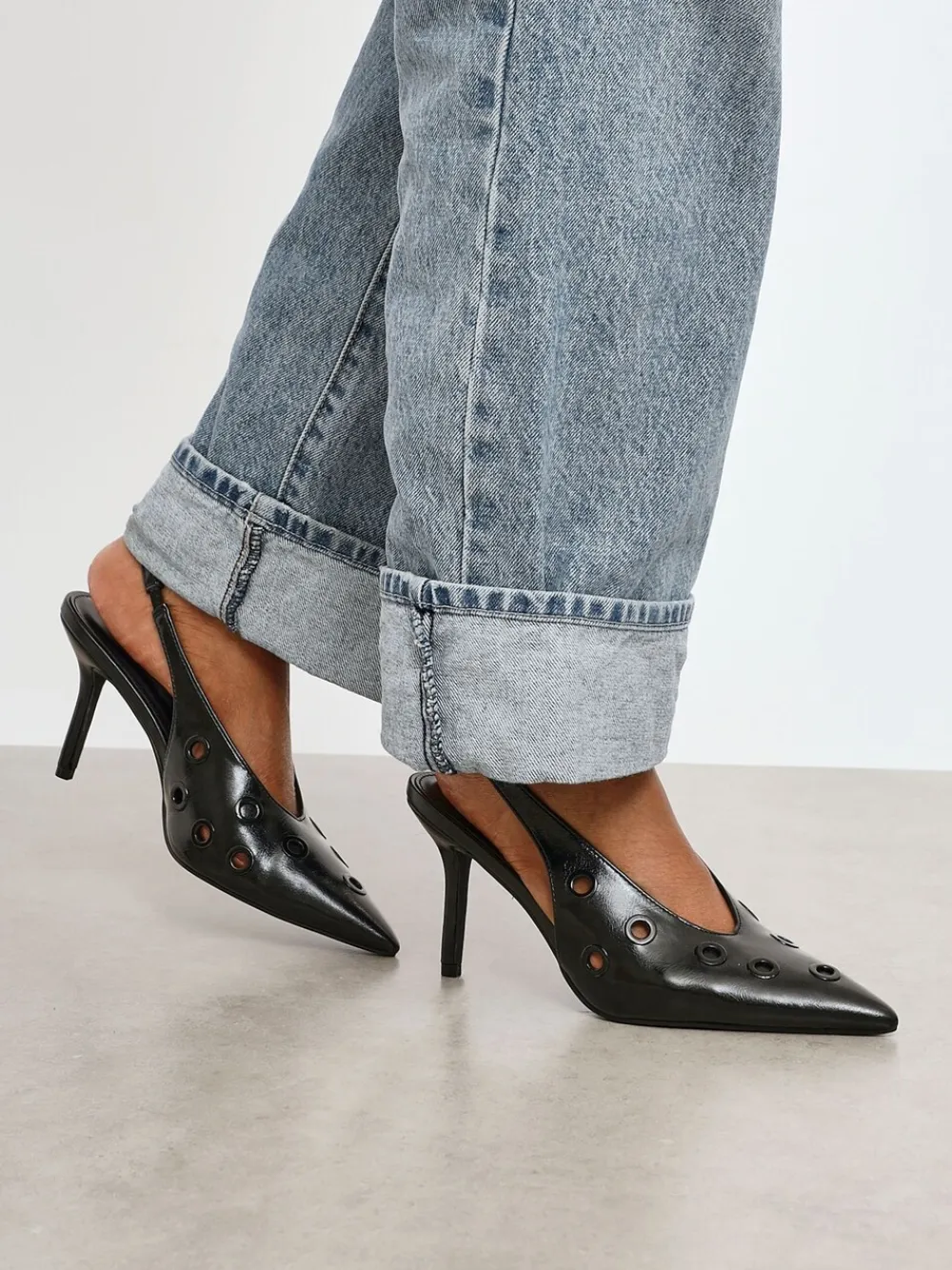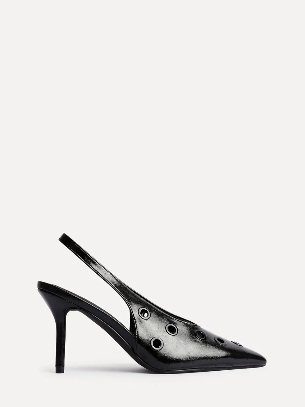 Our Abel court heels feature a pointed toe adorned with eyelet embellishments across the upper. Designed with a slingback strap and set on a sleek stiletto heel, complete with a cushioned insole for comfort. Heel height 8.5cm. Main – 100% Other fibres. Lining – 100% Other fibres. Sock – 100% Other fibres.