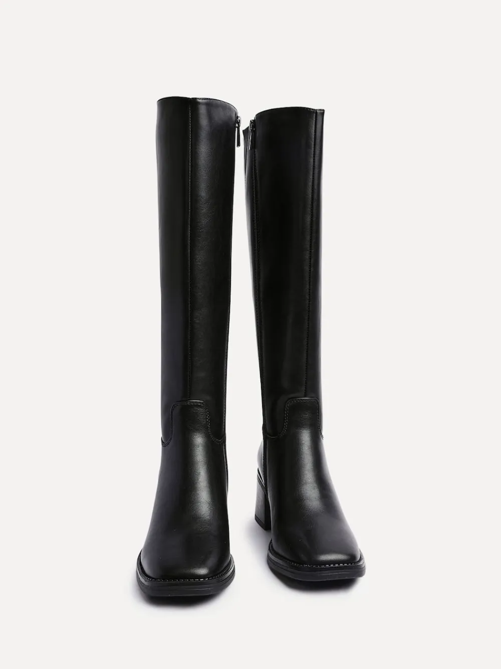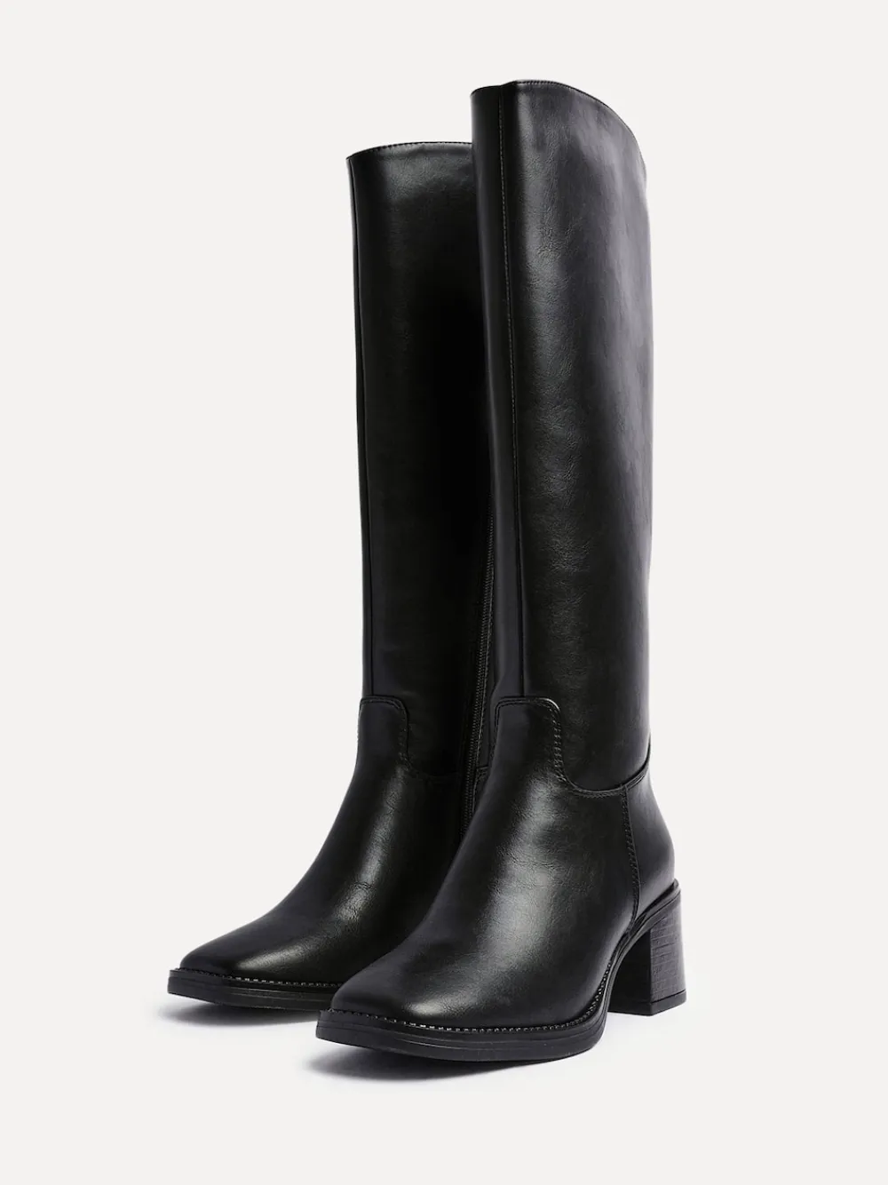 Step confidently into the season with our Brandy high-leg boots. Designed with a sleek square toe and a flattering curved top, they sit on a sturdy block heel. Indulge in the added comfort of plush fur lining and a cushioned insole. Boot Length: 38cm. Heel height 6cm. Upper – 100% Other fibres, Lining. and Sock – 100% Other fibres. Sole – 100% Rubber.
