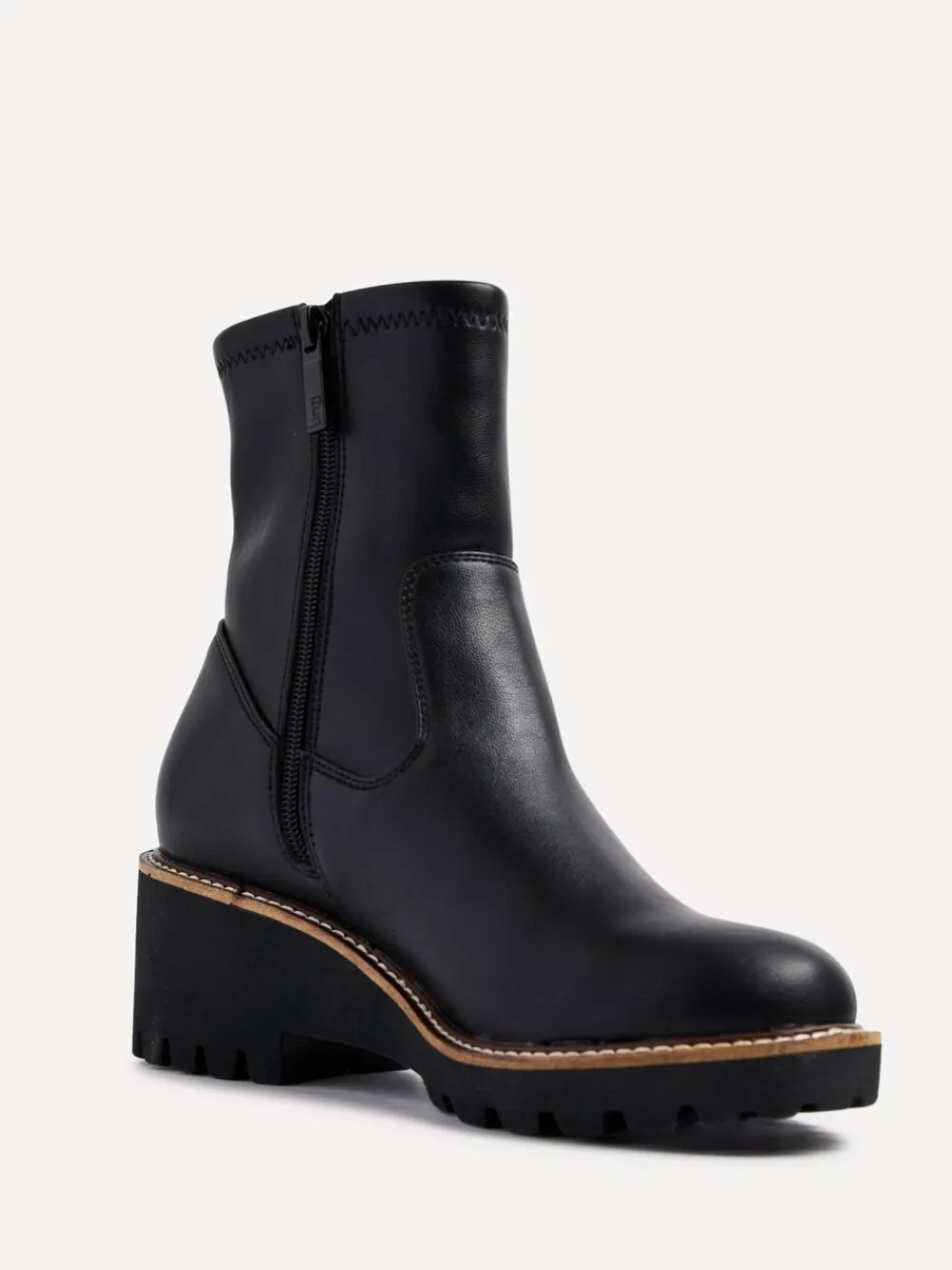 Linzi Black PU Trish Stretch Wedged Heel Ankle Boots Sale