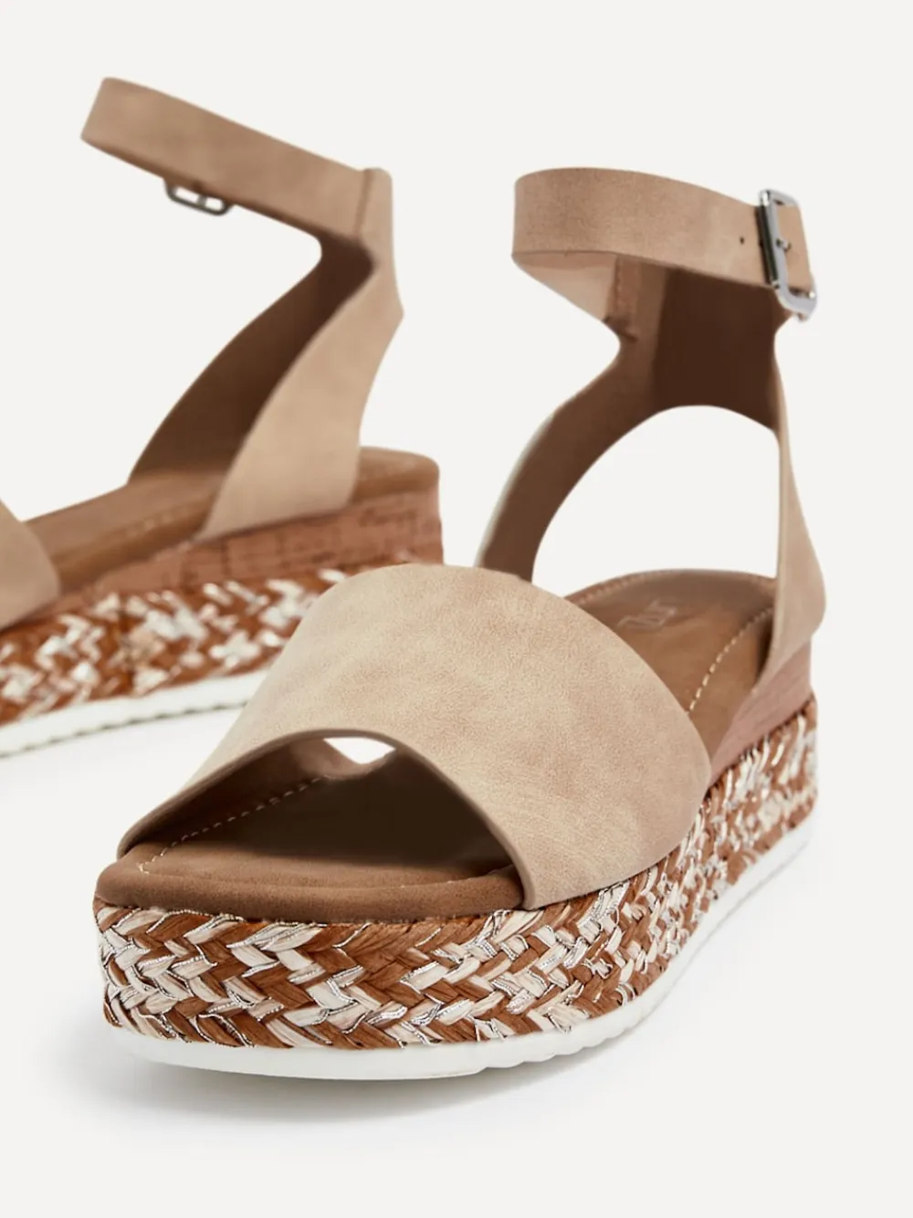 Elevate your style with our Coast flat form sandal, featuring metallic rope detailing and an ankle strap. These versatile shoes seamlessly blend fashion and comfort, making them the perfect choice for any occasion. Heel height 5cm. Upper – Other Materials, Lining and Sock – Other Materials, Sole – Other Materials.