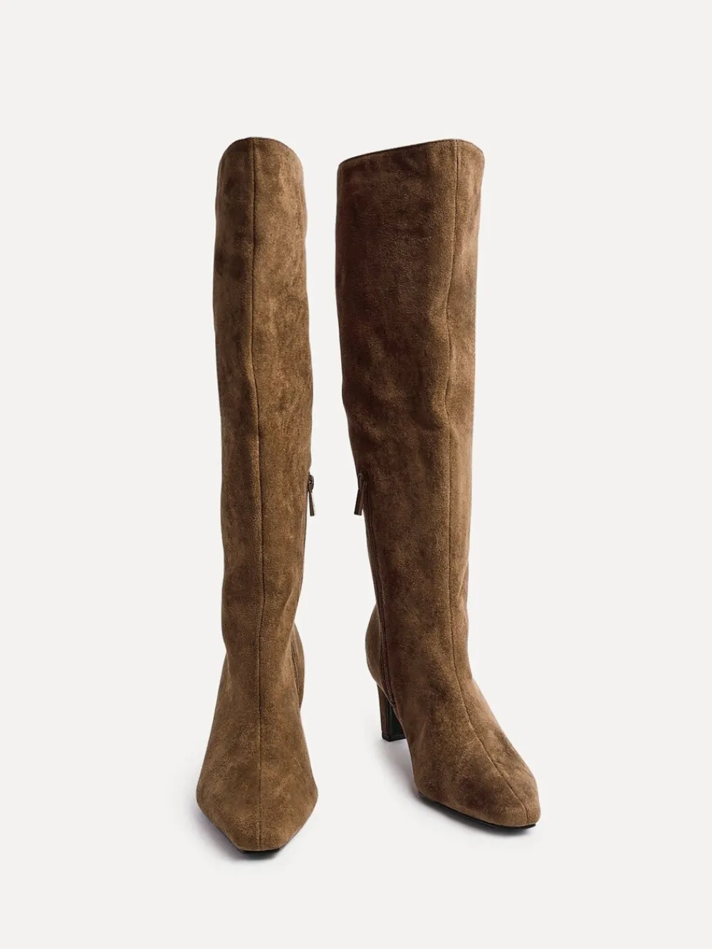 Elevate your wardrobe with our chic Uptown high leg boots. Featuring a sleek silhouette with a refined pointed toe and slim block heel. A modern touch is added with a halfway zip, while the cushioned insole ensures all-day comfort. Heel height 6.5cm. Upper – 100% Other fibres, Lining. and Sock – 100% Other fibres. Sole – 100% Rubber.