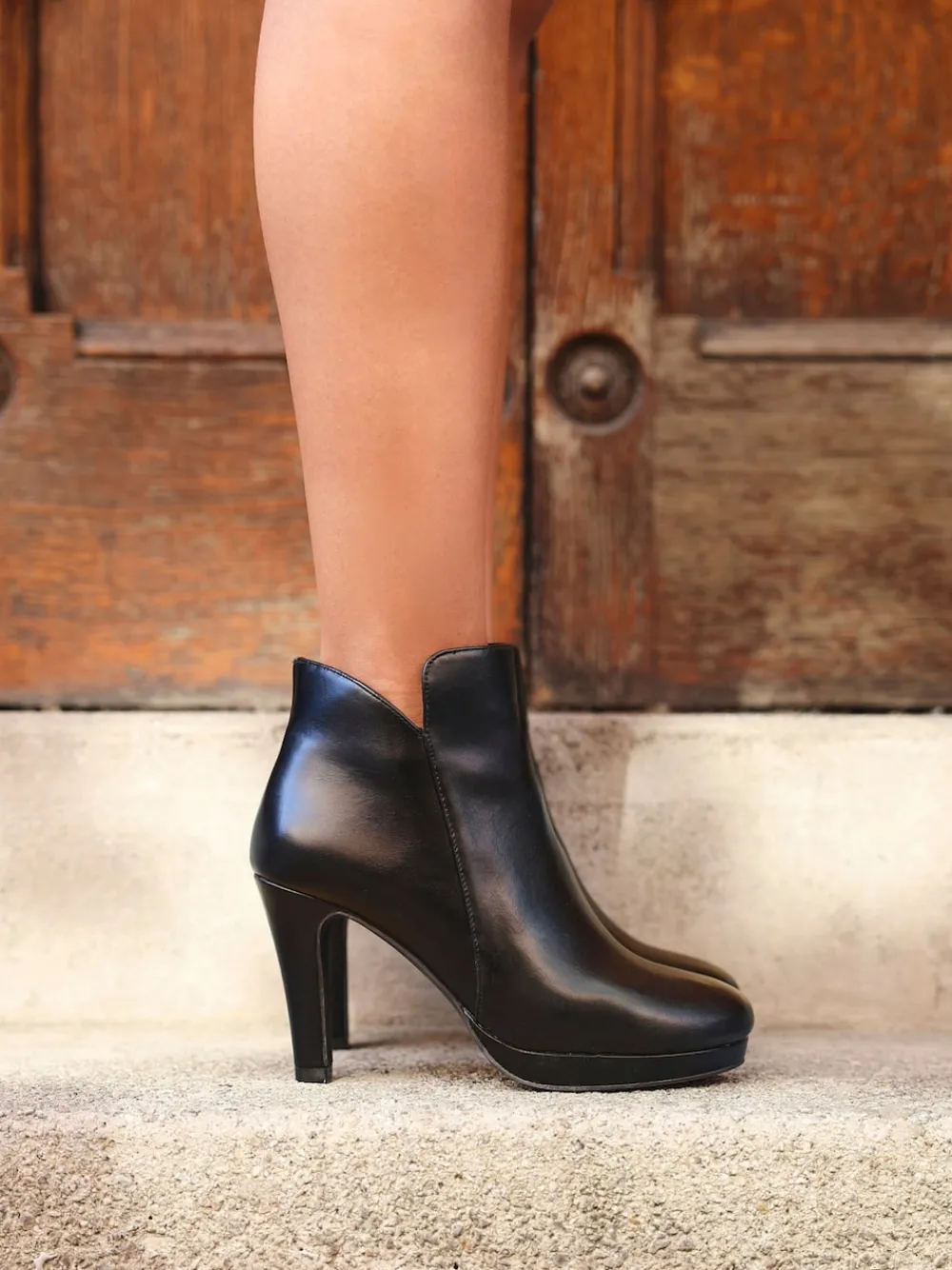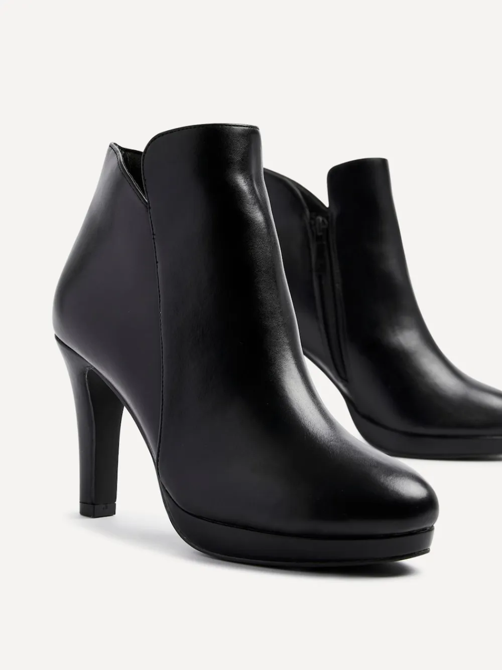 Our Layara heeled ankle boots redefines elegance with their plush PU construction, rounded toe, and convenient inner zip closure for effortless wear. Newly enhanced with a soft, cushioned insole, they ensure luxurious comfort all day long. Heel height 9.5cm. Upper – Other Materials, Lining & Sock – Textile, Sole – Other Materials.