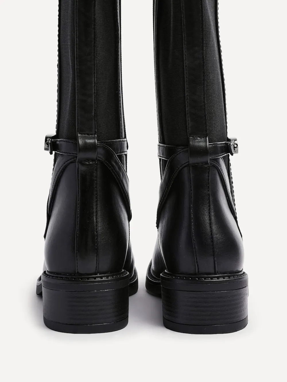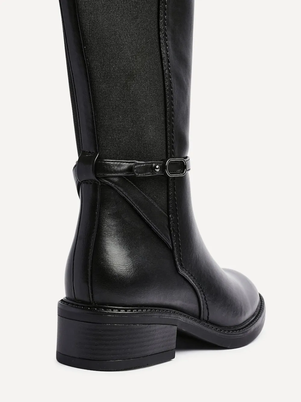 Linzi Power High Leg Boots With Stretch Side Panel and Buckle Detail Black Discount