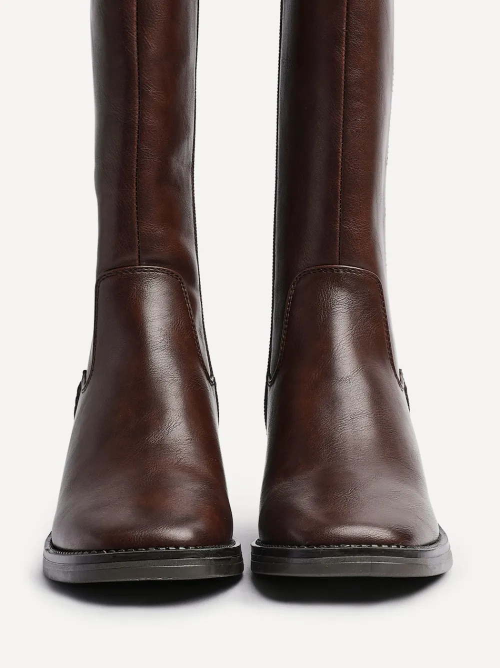 Linzi Reason Block Heel High Leg Boots With Back Stretch Panel Brown Best