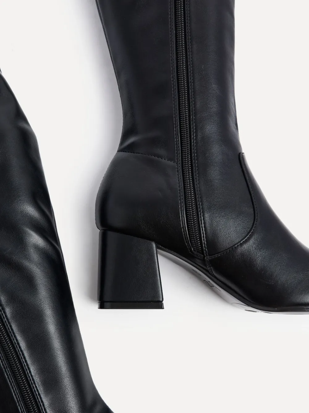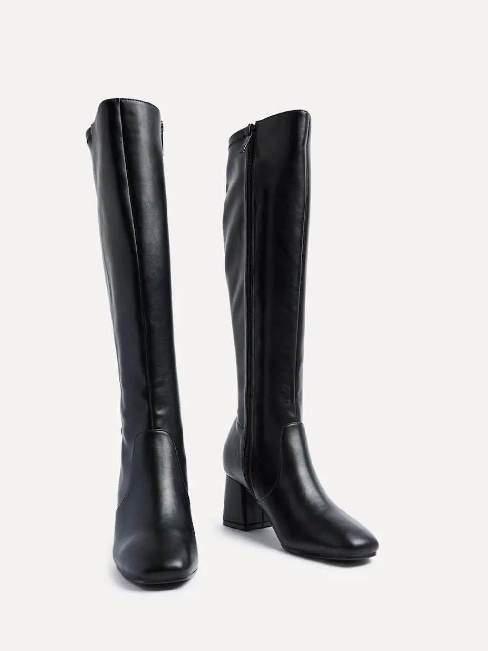 Be the first to review “Linzi Slate Stretch Knee High Block Heel Boots Black PU” Cancel reply