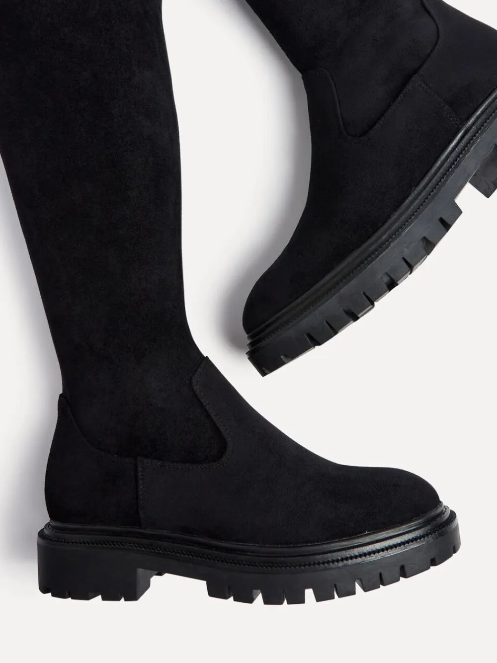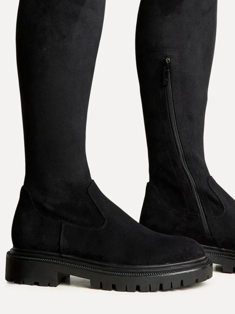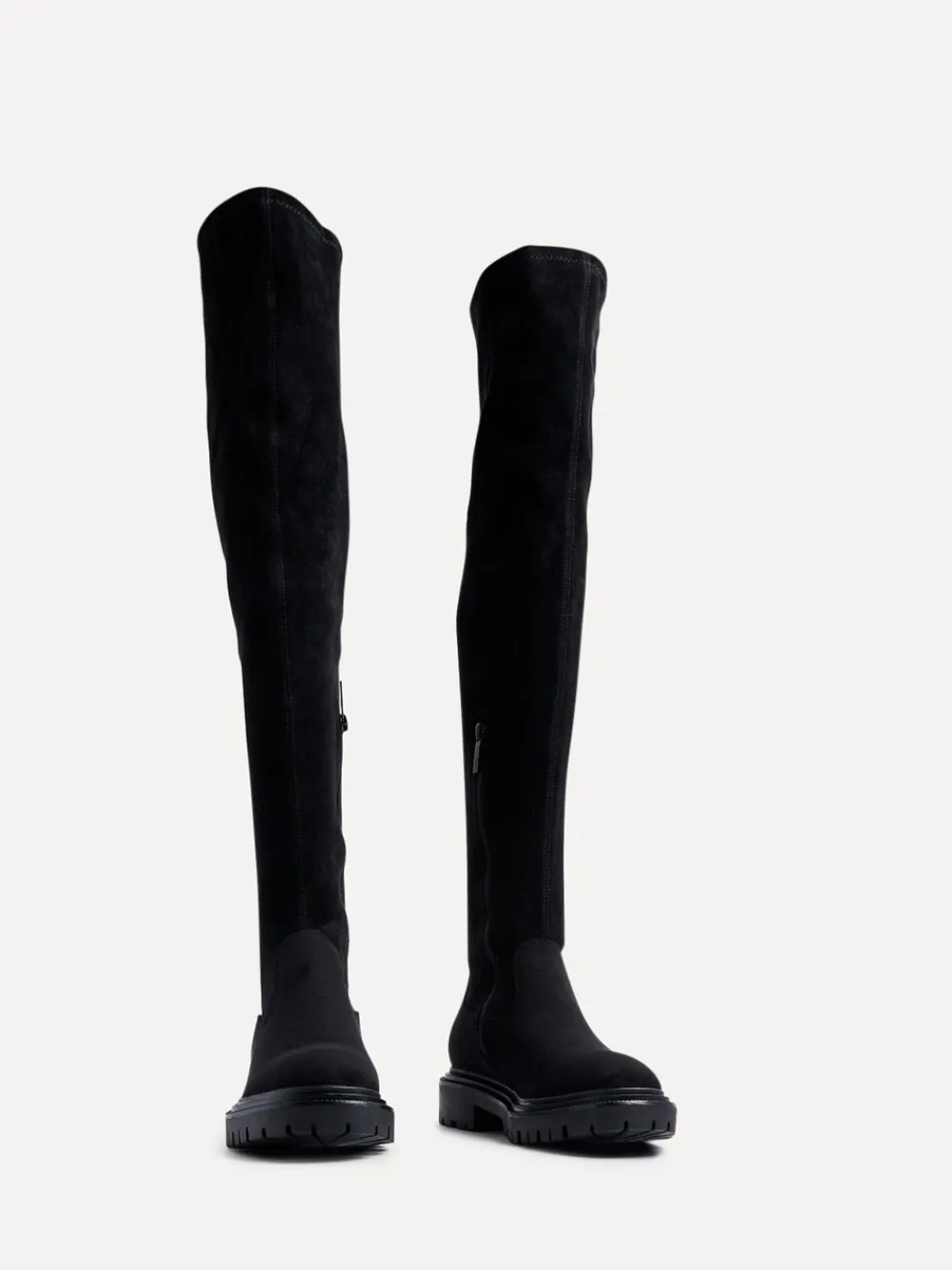 This elegant, over-the-knee boot is crafted from a luxe faux-stretch leather and features a half-length interior zipper. With a boot length of 62cm, it epitomizes sleek sophistication. Made with a soft, cushioned insock to ensure ease and comfort with every step. Heel height 2cm. Upper – Textile, Lining & Sock – Textile, Sole – Other Materials.