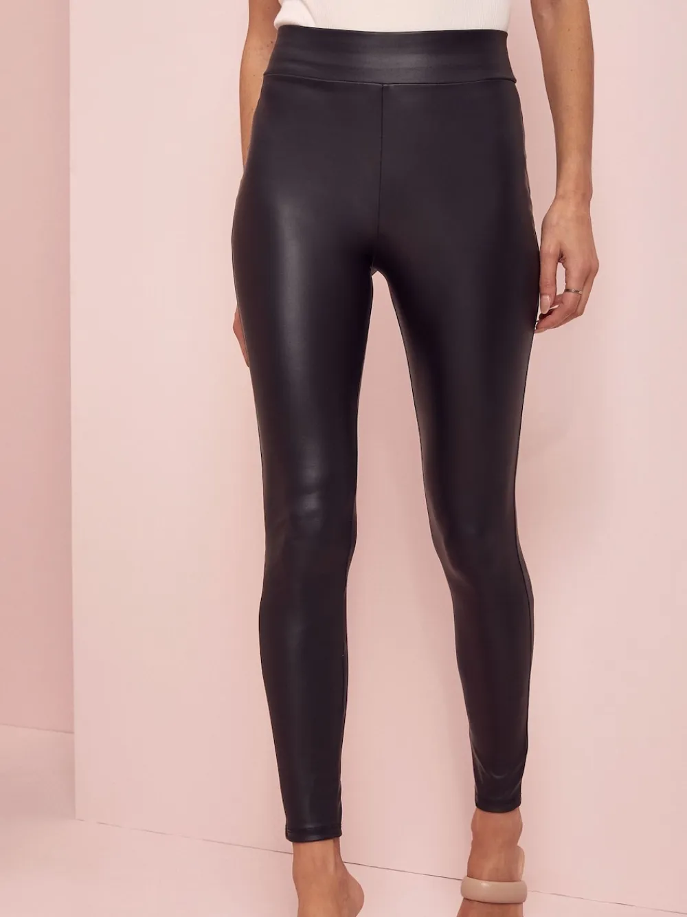 A pair of faux leather leggings from Lipsy in a black tall-leg fit. The tall collection has been designed to flatter through the body. The tall range is available for women 5ft 10” and above. Clean by lint roller. Main 100% Polyurethane. Backing 96% Polyester, 4% Elastane.
