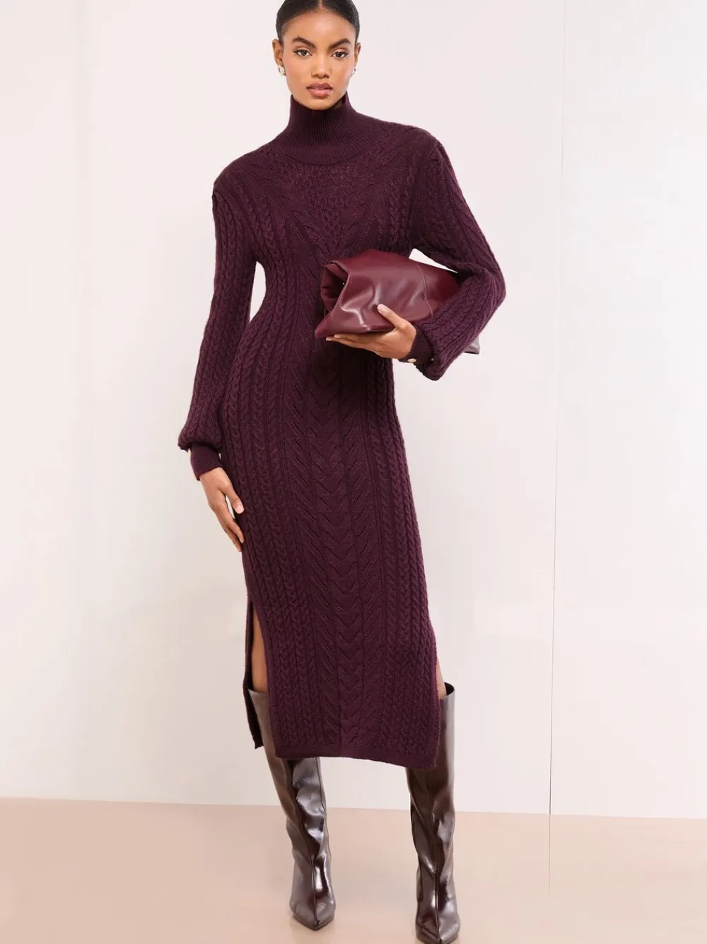 Be the first to review “Lipsy Burgundy Red Roll Neck Cable Knit Midi Dress Outlet” Cancel reply
