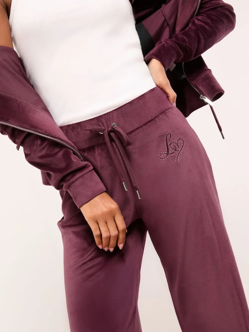 Lipsy Embroidered Velour Relaxed Wide Leg Joggers Plum Purple Online