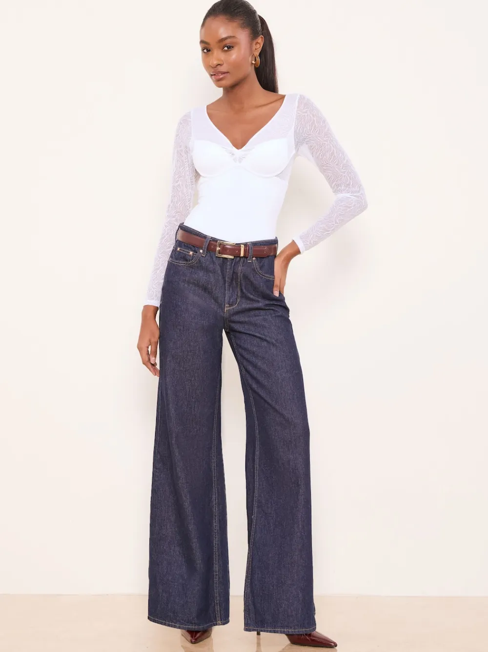 Lipsy Lace Long Sleeve Padded Thong Bodysuit White Clearance
