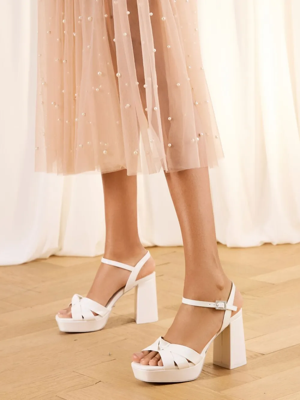 Elevate your bridal look with our beautifully timeless ivory block-heeled sandals. Designed in-house, these wedding shoes have our bespoke Lipsy-branded sock and sparkling jewelled buckle, complete with a stunning rivet placed discreetly on the sole. Our wedding shoes are finished with comfortable padding to take you right from the start of your big day through to party the night away! Perfectly packaged in a specifically designed bridal shoe box. Heel height 9.5cm. Upper – Other Materials, Lining & Sock – Other Materials, Sole – Other Materials.