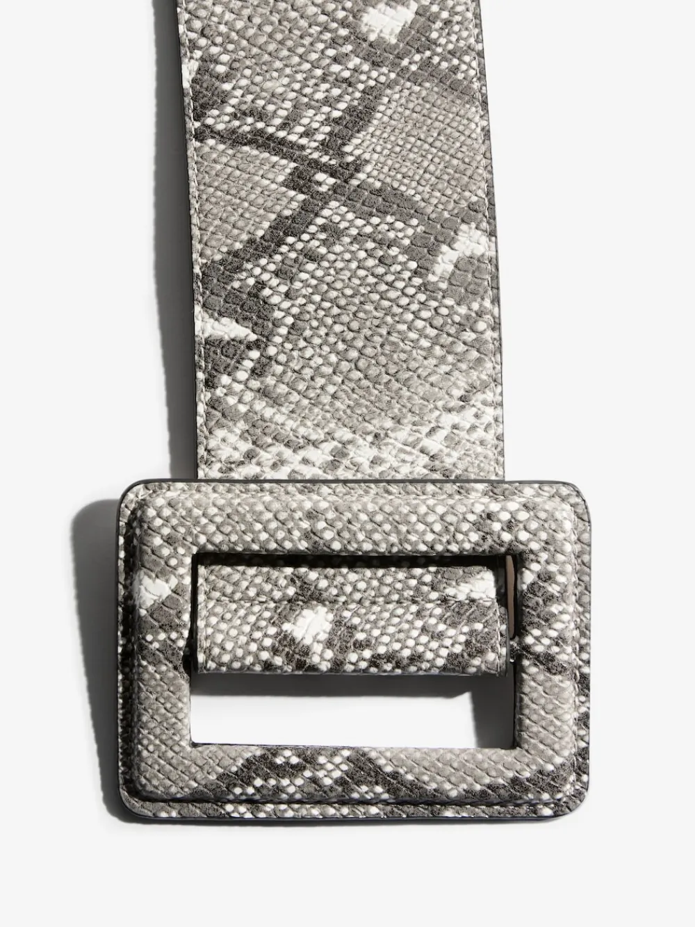 Make a statement with this Lipsy Wide Buckle Belt. Crafted from a leather look material featuring a sophisticated croc effect texture, the design is defined by its wide buckle in matching material for a seamless, tonal finish. Its bold width makes it the perfect piece for cinching the waist of a dress or layering over a coat to create a structured silhouette. Croc effect Leather look Wide buckle 100% Polyester with PU coating.