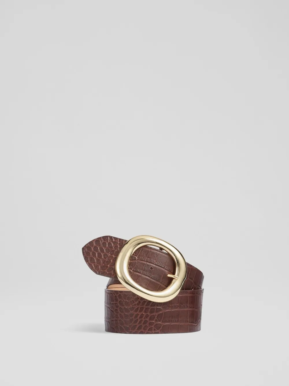 The Bromley belt is crafted in Italy from brown croc-effect leather. It’s a classic width finished with a large, oval polished-gold buckle. 100% Leather.