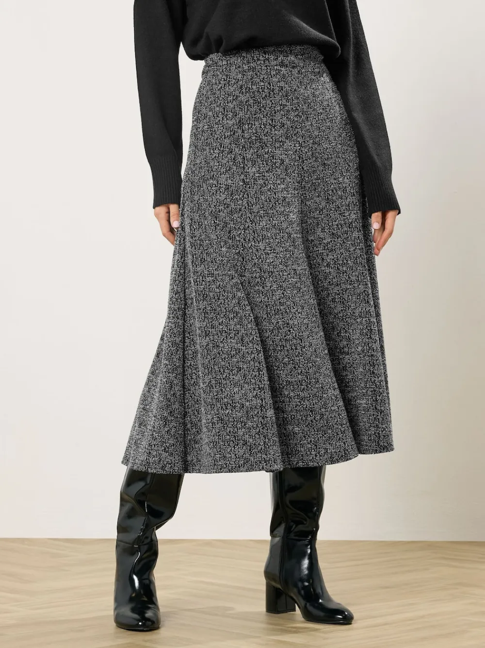 Fit & Fashion Notes: Elevate your workwear outfits with this boucle skirt. Made from a comfortable woven fabric, it features an elasticated waist, a-line style and falls at a midaxi length. Style with a roll neck jumper and boots for an office-ready look! Machine washable. 95% Polyester, 5% Elastane.