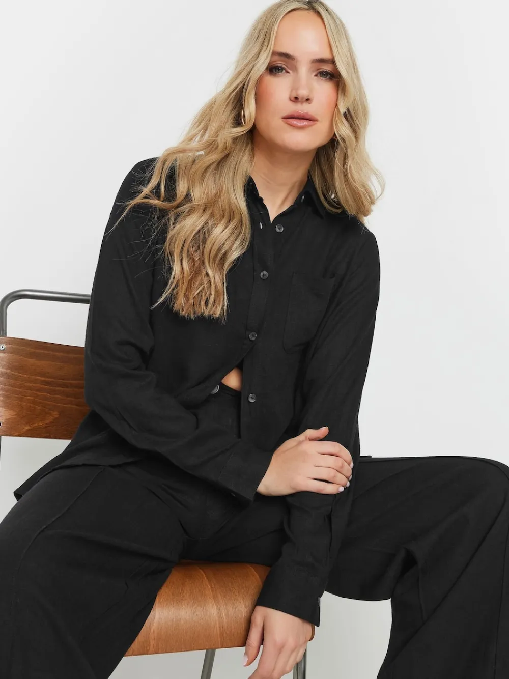 Fit Fashion Notes: Invest in your essentials this summer with this linen shirt. Made from a woven fabric containing linen, it features a classic collar, button fastenings through and is complete with long sleeves. Mix and match with the coordinating shorts for a look you’ll style on repeat. Features: Please note this product contains linen. See fabric composition for details. 85 viscose, 15 linen Long buttoned sleeves Classic collar Oversized fit Button fastenings through Chest pocket Made from a comfortable woven fabric Length from approx: 70cm/27.5 Machine washable Model is 511/180cm and size UK 10/EU 38. Machine washable. 85% Viscose, 15% Linen.