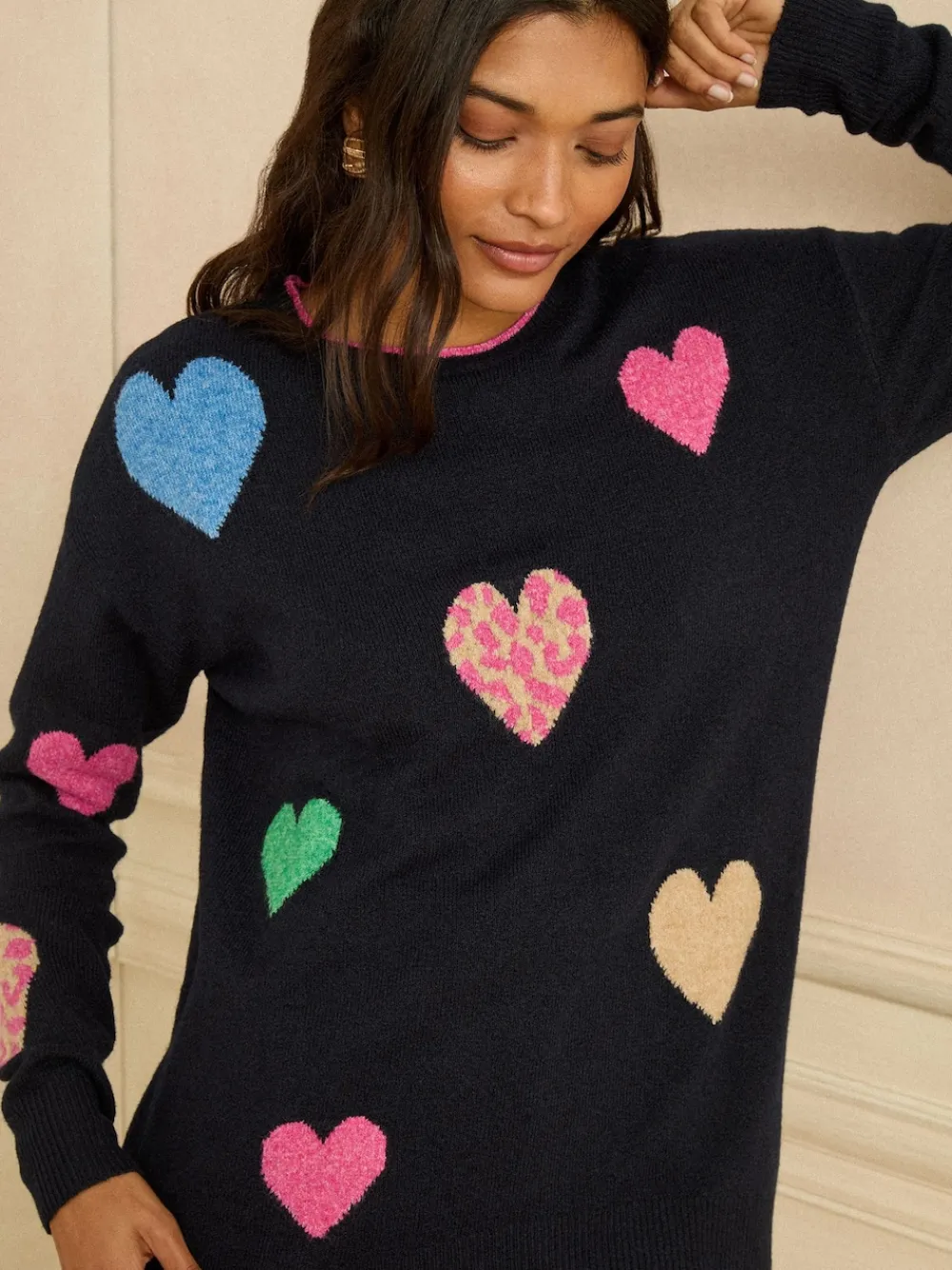 Love & Roses Animal Heart Jumper Navy Blue Multi Best
