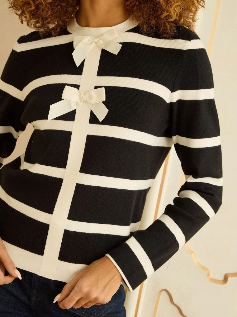 Love & Roses Black And White Striped Bow Detail Knitted Jumper Best