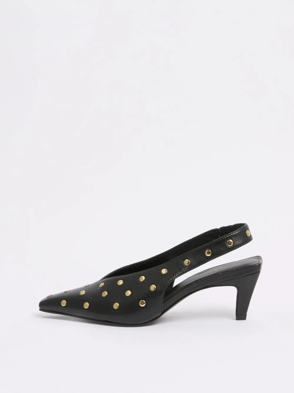 Love & Roses Chisel Toe Slingback Smart Kitten Heel Court Shoes Black Real Leather Sale
