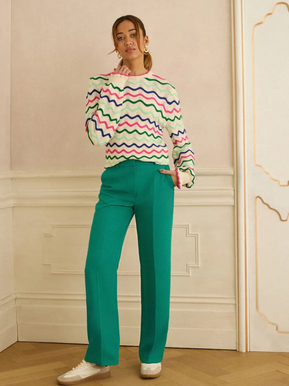 Love & Roses Frill Neck Knitted Jumper Cream Multicolored Wavy Stripe Discount