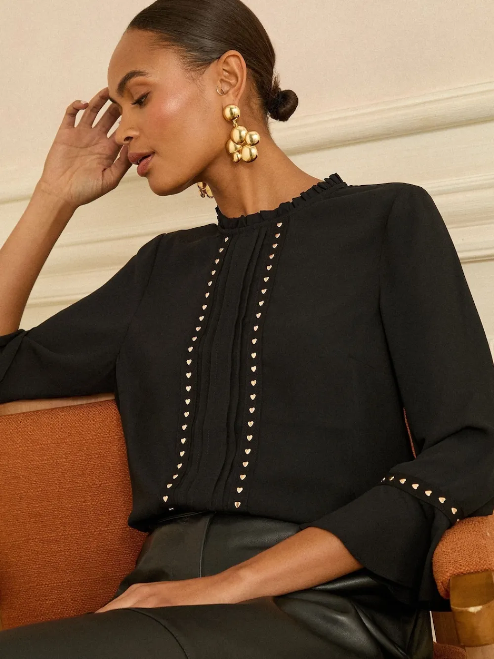 Love & Roses Hardware Detail Flute Sleeve Blouse Black Heart Best