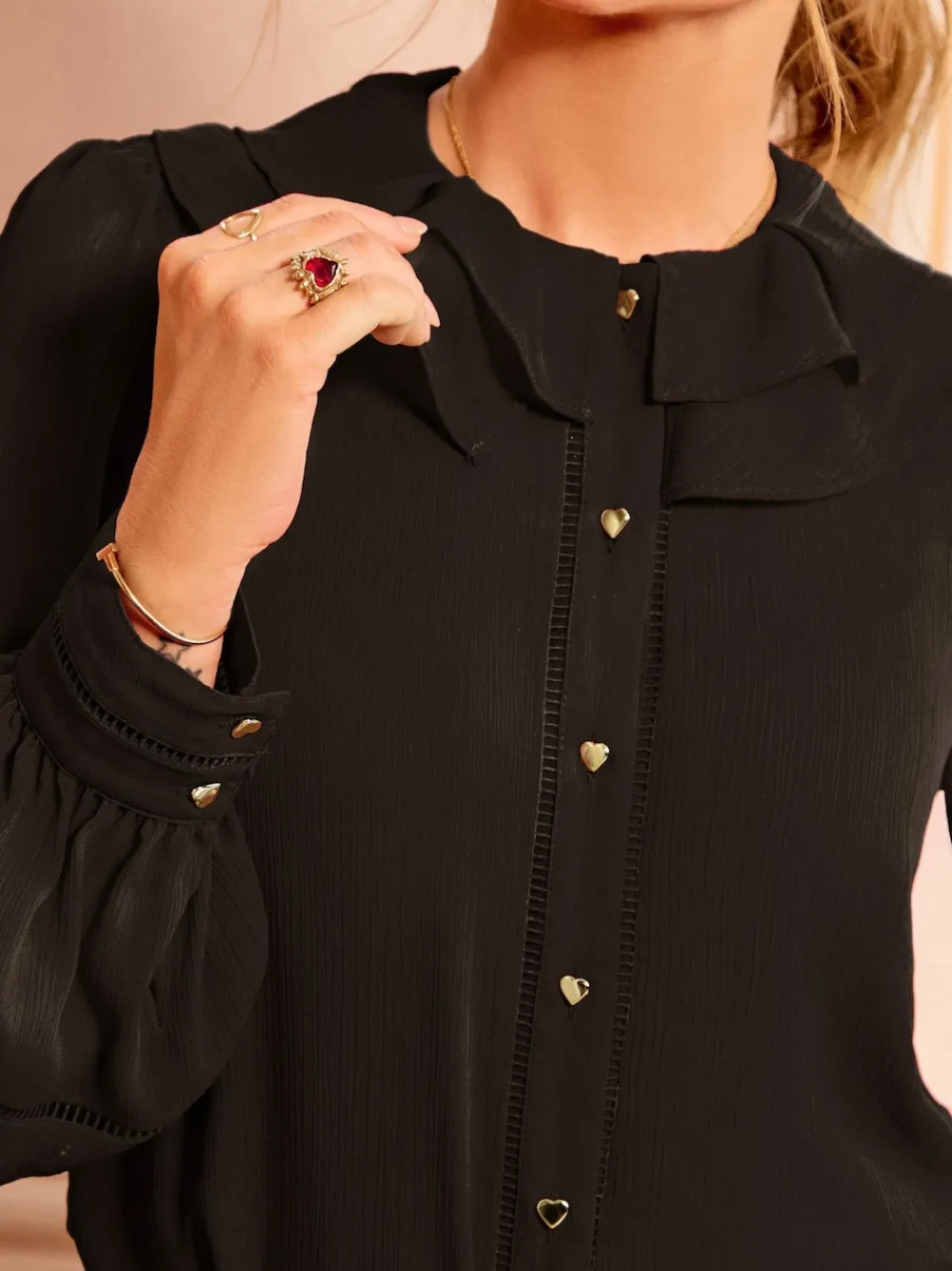 Love & Roses Long Sleeve Frill Collar Blouse Black Online