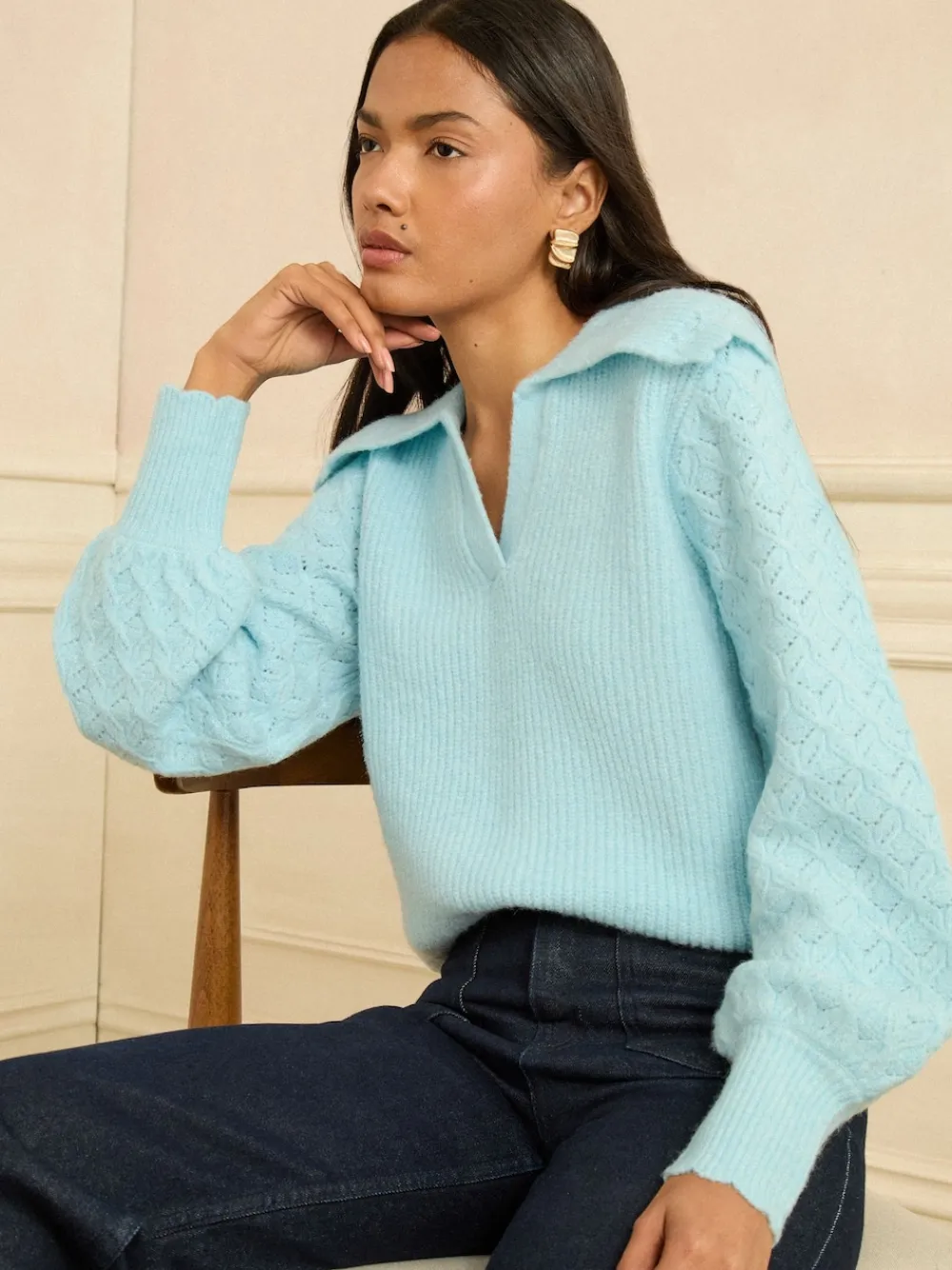 Love & Roses Pale Blue Knitted Collared Jumper Online