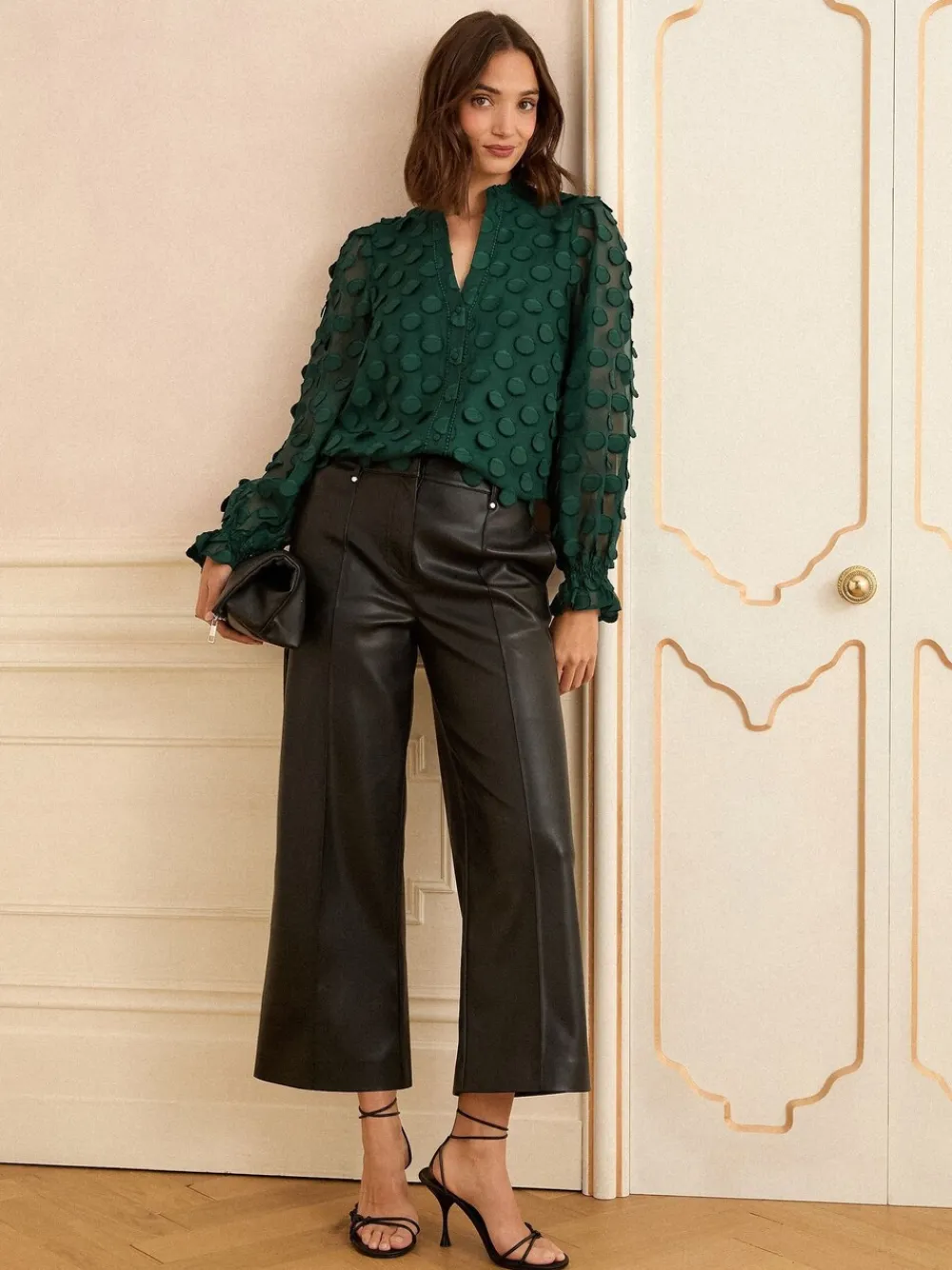 Love & Roses Petite 3D Spot Long Sleeve Blouse Dark Green Outlet