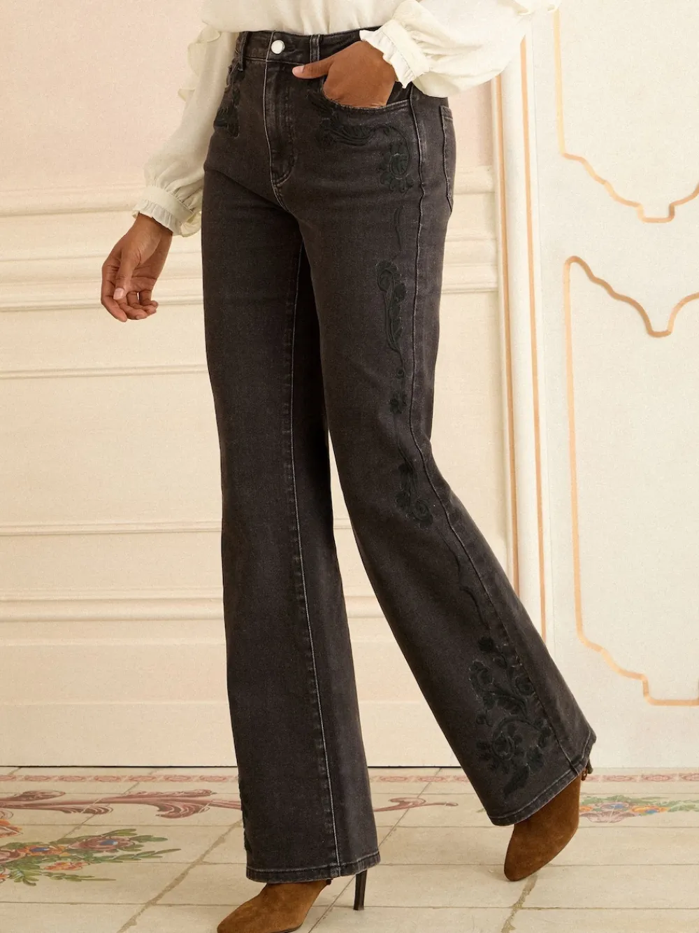 Love & Roses Petite Bootcut Jeans Black Embroidered Discount